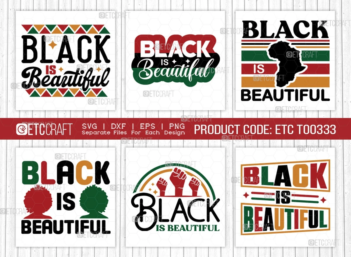 Our "Black Is Beautiful SVG Bundle" is a compelling and versatile collection that celebrates the beauty, strength, and significance of Black women and their history. With its exclusive designs, user-friendly features, and meaningful messages, it's the perfect toolkit for anyone looking to make a positive impact through their creative ventures. If you're a seasoned designer or a passionate individual, these SVGs provide an excellent opportunity to spread love, respect, and appreciation for Black culture and history through your art. Get inspired and let your designs tell a powerful story that transcends boundaries and unites people in celebrating diversity and beauty.