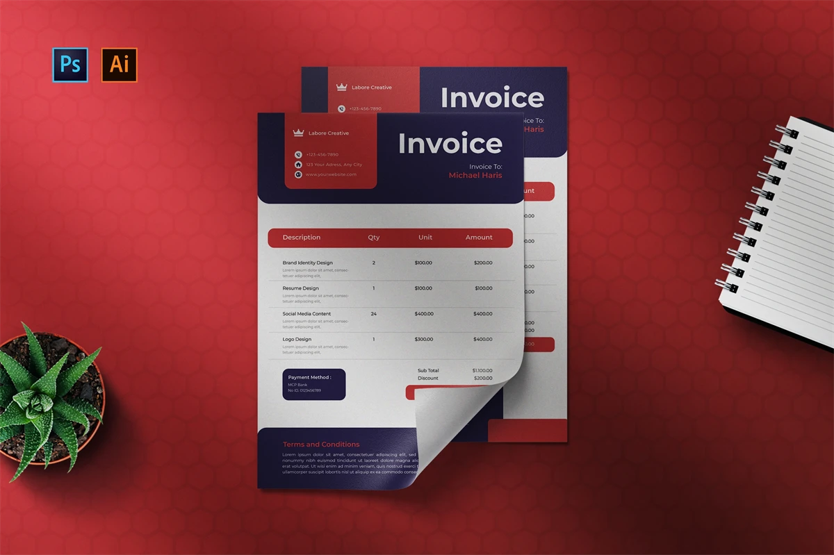 Black Modern - Invoice Template professional, up-to-date invoice templates that can be used for personal, business, or company billing. You can easily change these template files. You can quickly change the text, fonts, and colors with just a few clicks to create your own content and color scheme. This invoice template will make it easy and quick for you to make an invoice.