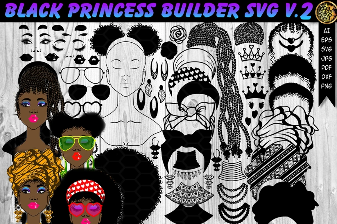 Black Princess Layered SVG Clip Art Cut Files V.2