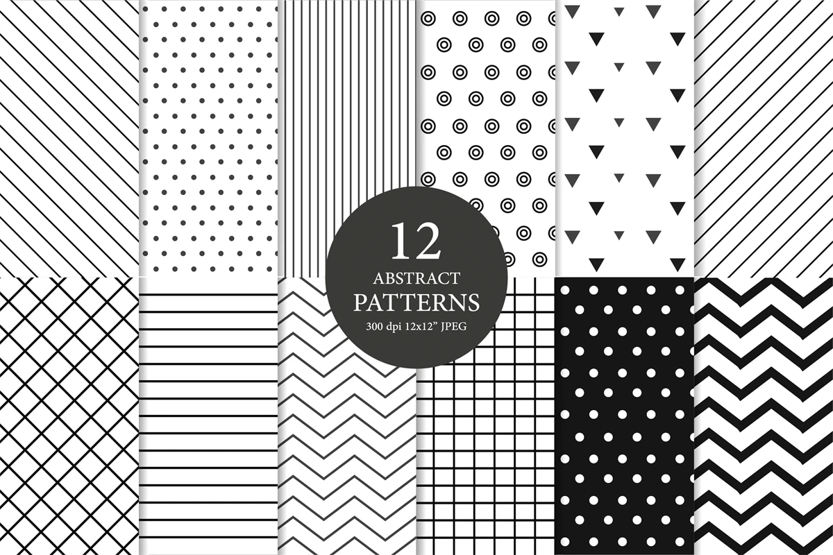 Black & white patterns, Abstract geometric shapes, Digital paper set, Clipart patterns, 12 JPEG 300dpi 12x12 inches, Seamless patterns