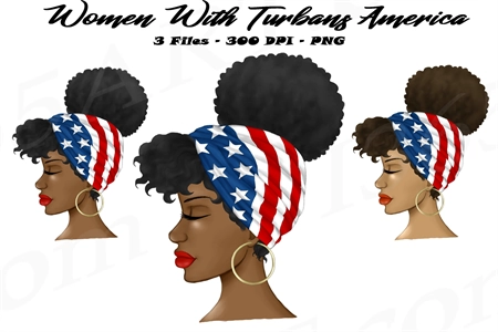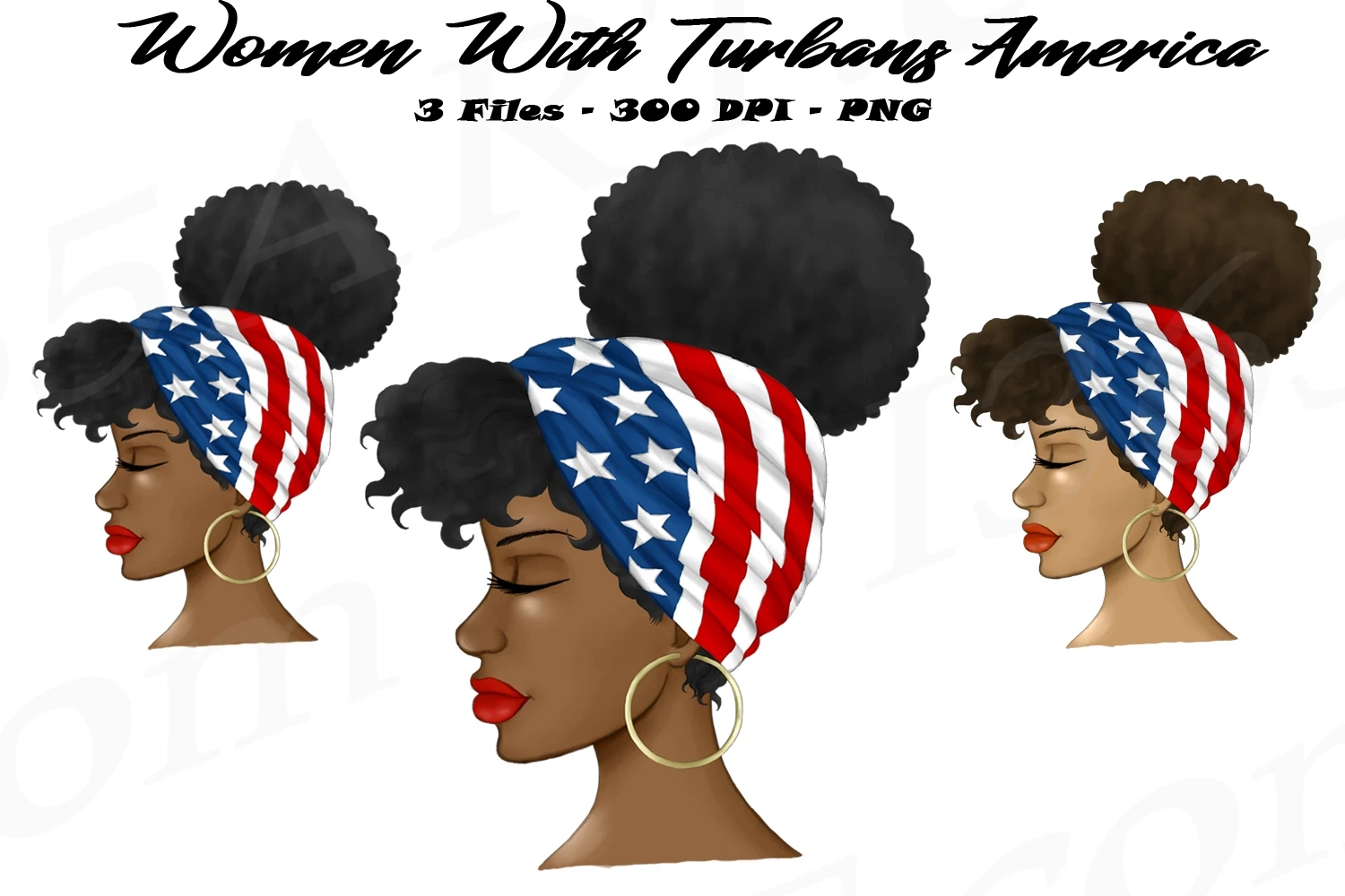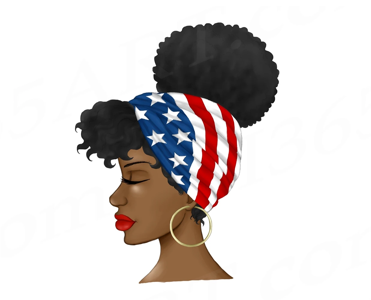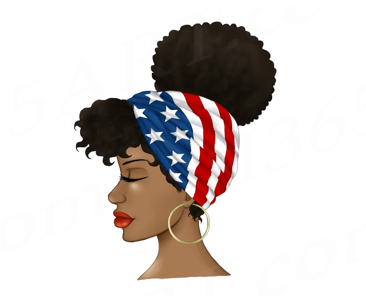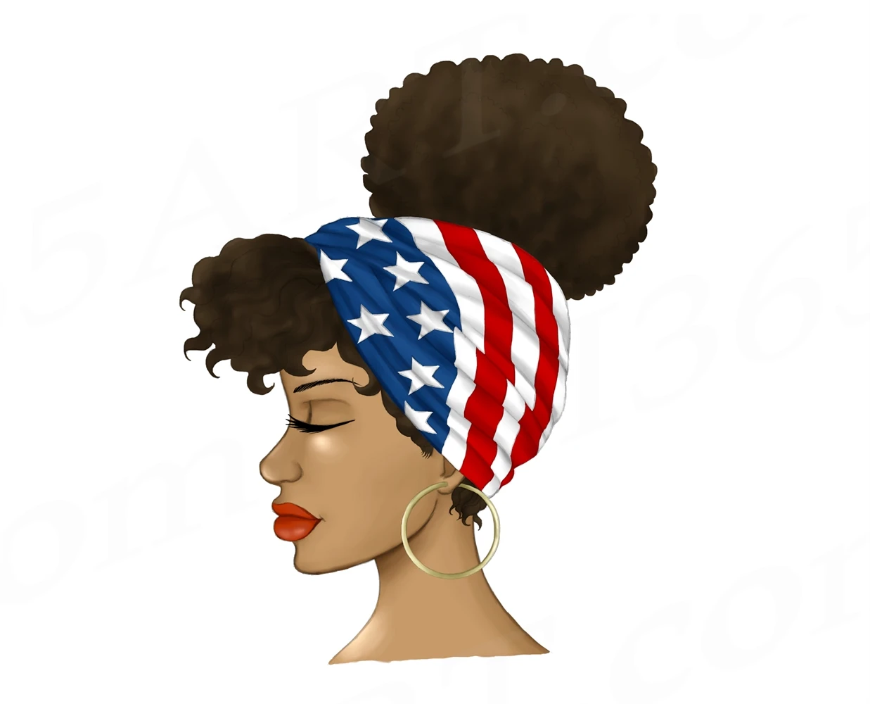 Black Women America Turban Headwrap July 4th Afro Clipart
