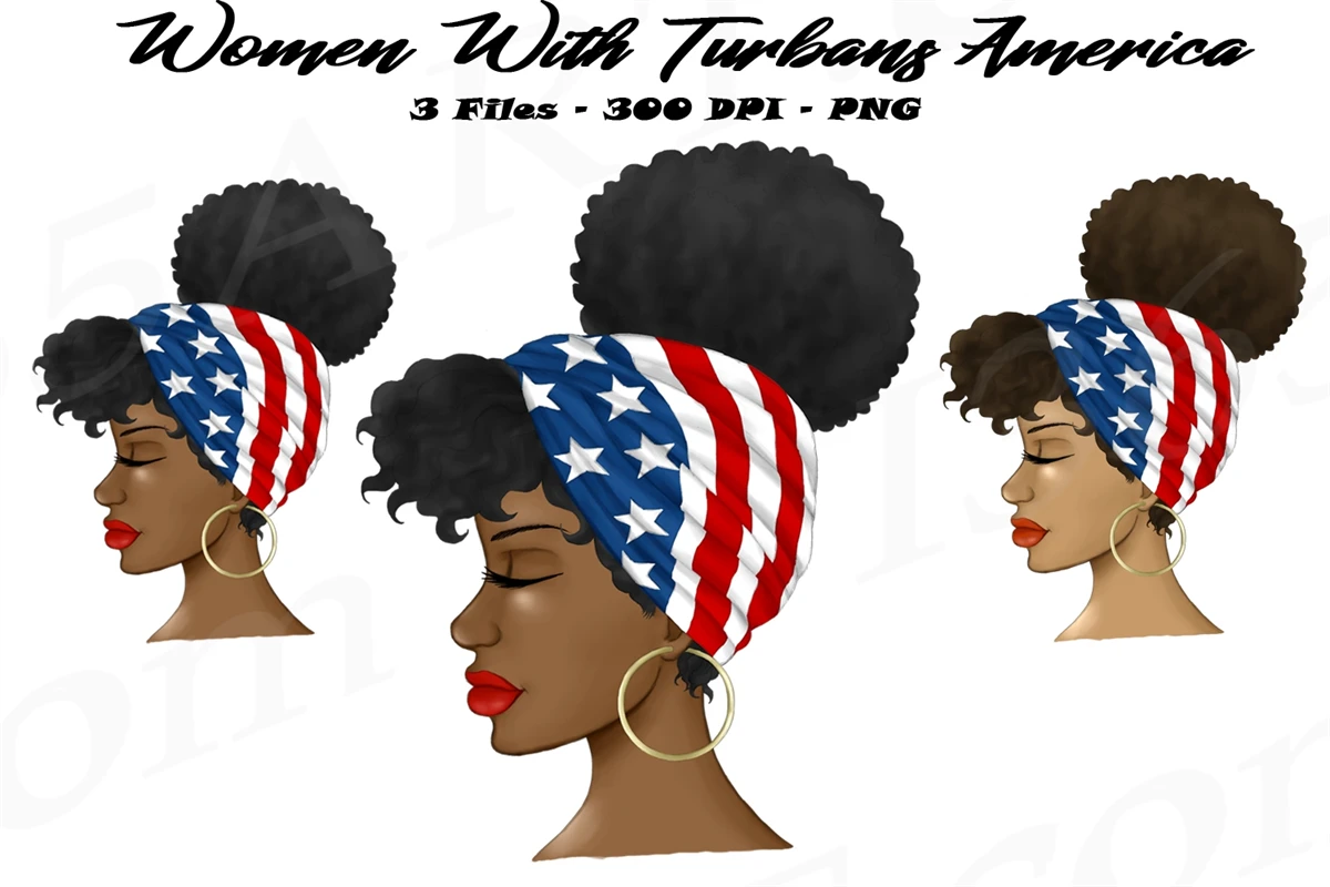 This set contains 3 images of beautiful black women with American flag headwrap turbans. Can be used in various projects including planner stickers, stationary, scrapbooking, party invitations, crafts, decorations and more!