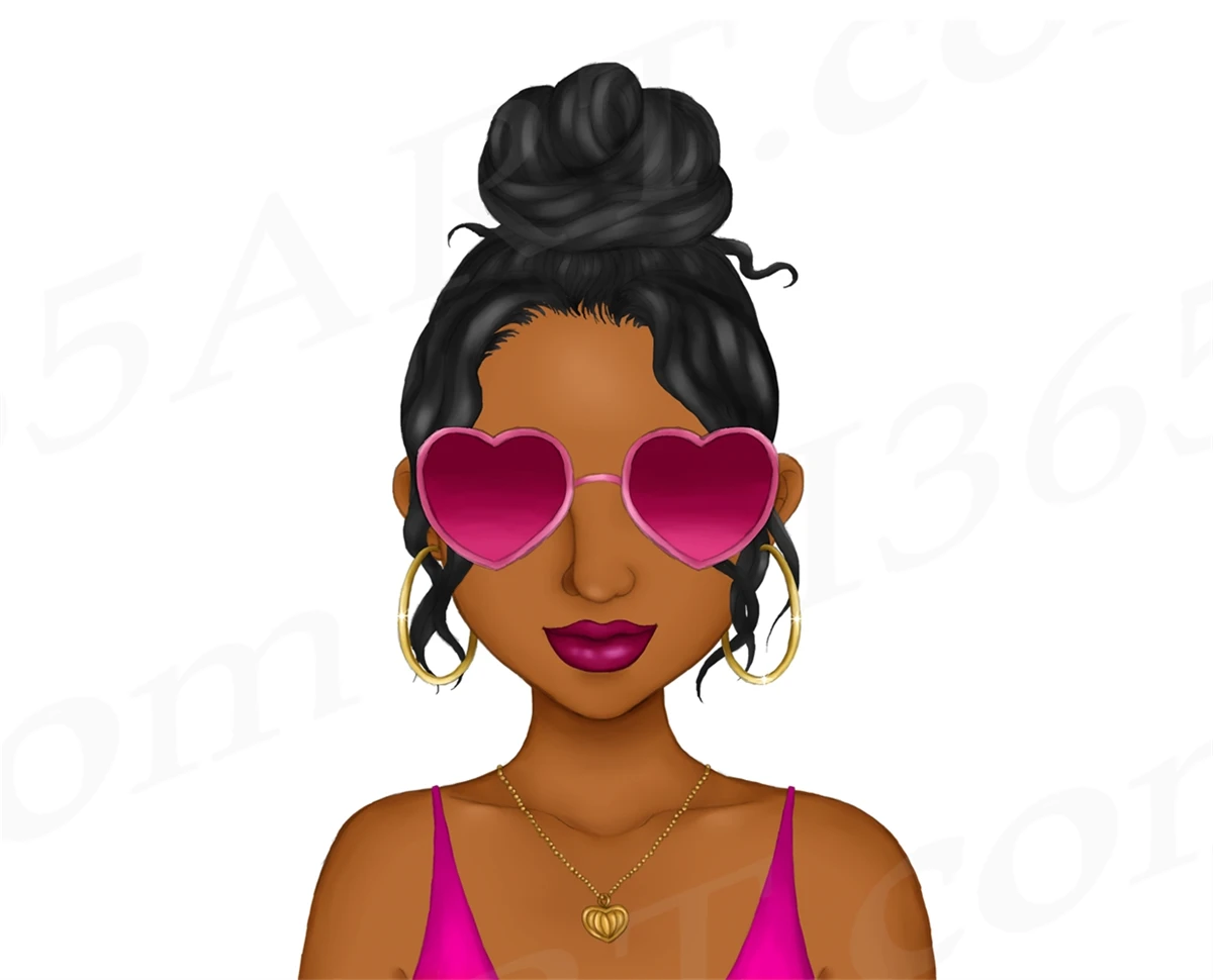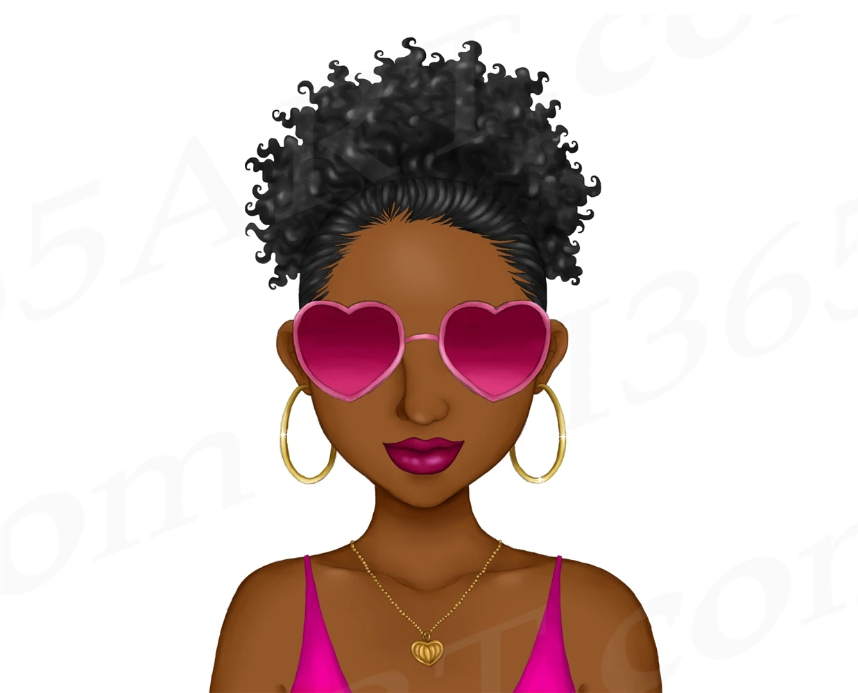 Black Women Heart Glasses Natural Hair Clipart Nubian PNG