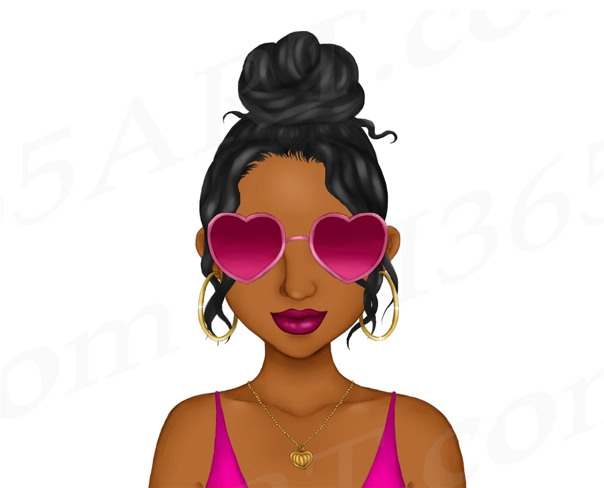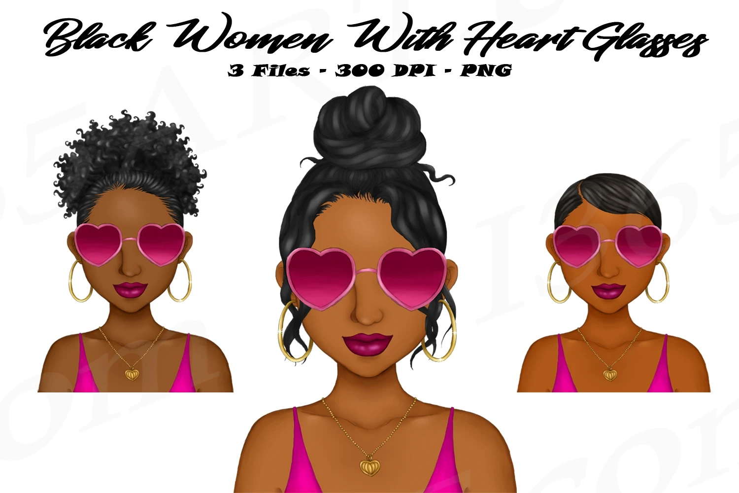 3 African American women wearing heart glasses. Can be used in various projects including planner stickers, stationary, scrapbooking, party invitations, crafts, decorations and more!