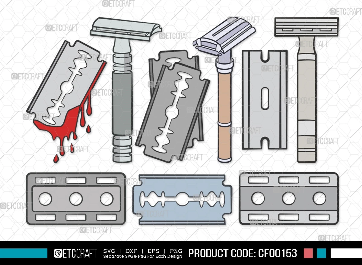 Explore a bygone era of grooming with our Blade Razor Clipart Vintage Shaving Barber Tools SVG Cut File Bundle. Delve into the world of traditional grooming tools with meticulously designed clipart files that pay homage to vintage razors. This bundle offers a variety of file formats and effortless customization, making it an ideal choice for enthusiasts, barbers, and anyone seeking a touch of nostalgia in their projects.