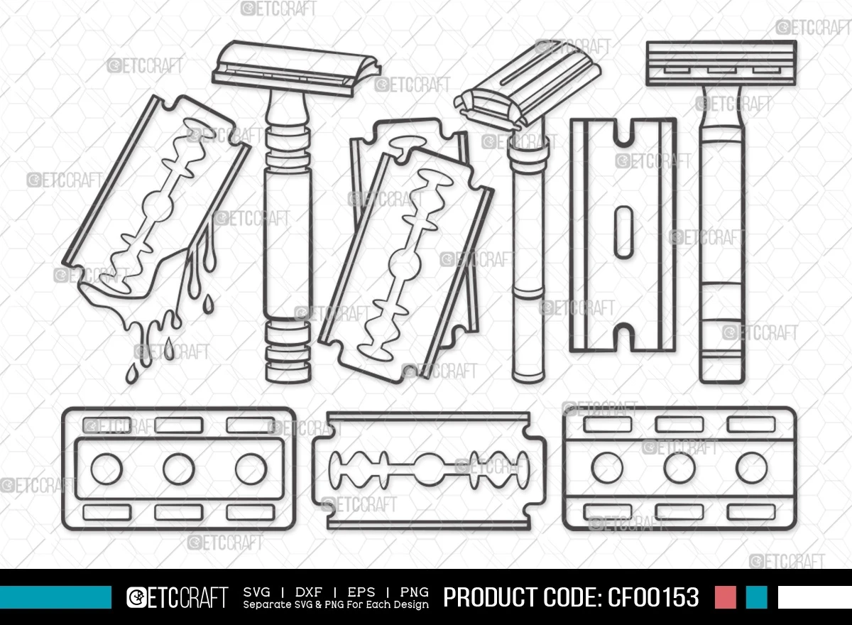 Discover the essence of vintage grooming with our Blade Razor Outline Vintage Shaving Barber Tools SVG Cut File Bundle. Immerse yourself in the world of traditional grooming tools with meticulously designed clipart files that pay homage to vintage razors. This bundle offers a variety of file formats and effortless customization, making it an ideal choice for grooming enthusiasts, barbers, and crafters seeking a touch of nostalgia in their projects.