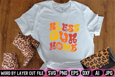 Bless Our Home Retro Svg Design, Retro Svg Cut File