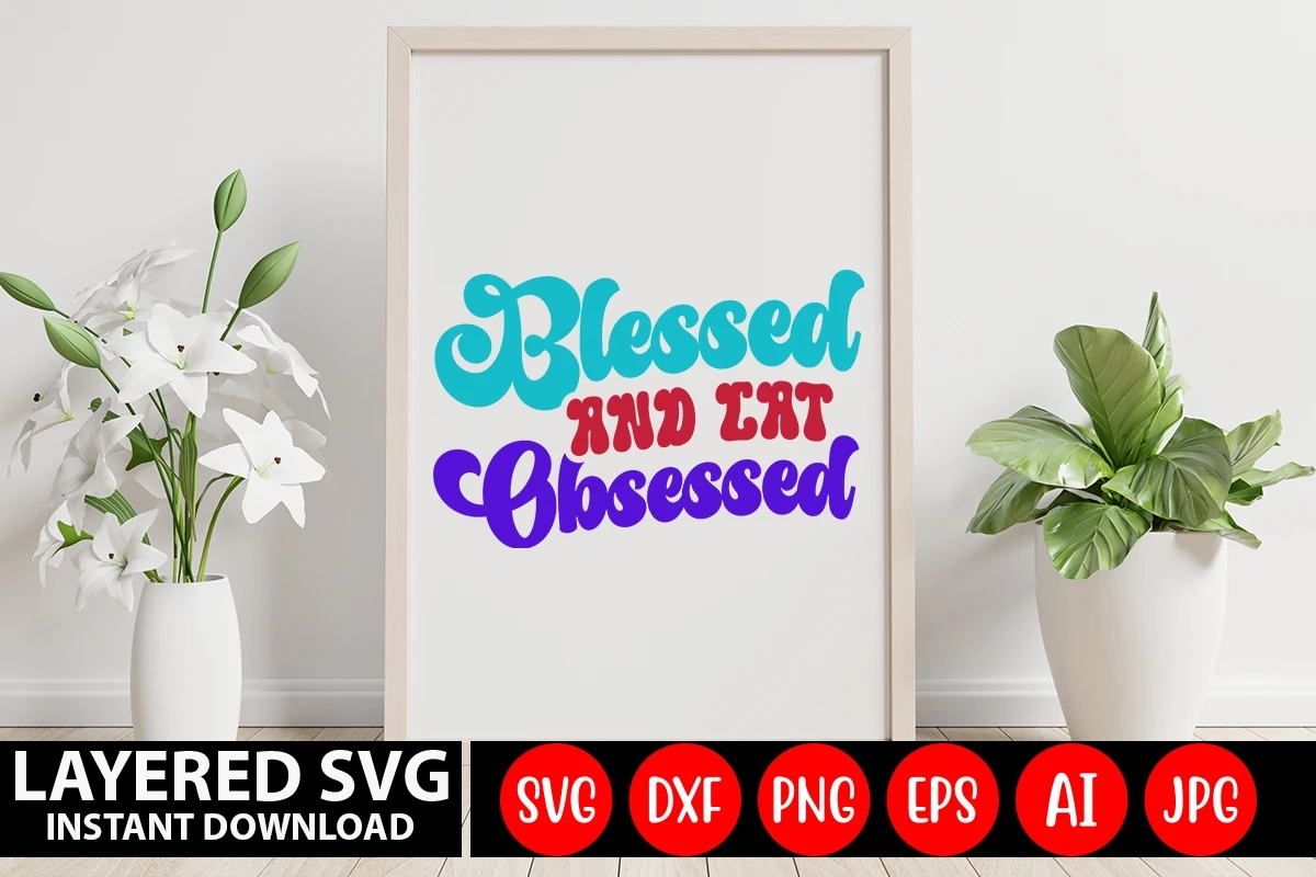 Blessed And Cat Obsessed Retro SVG Design