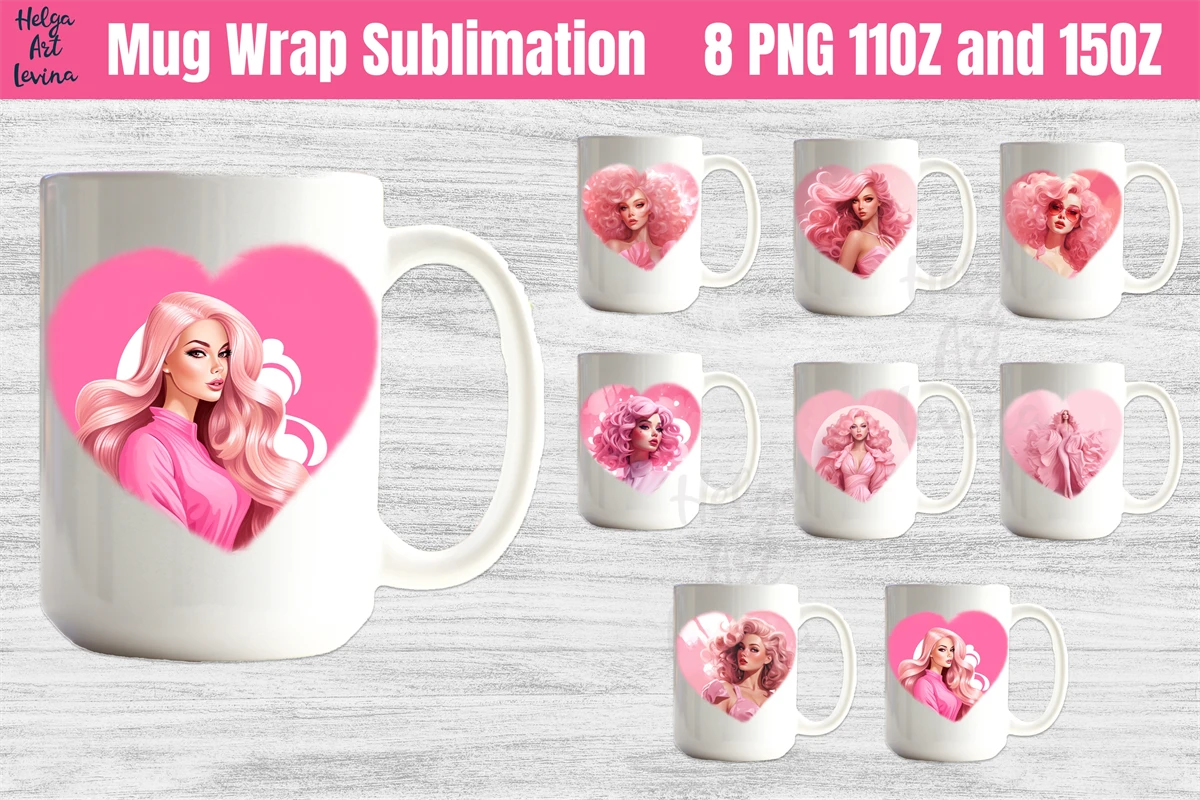 Blonde Girl Mug Sublimation 11OZ and 15OZ, Coffee Cup Background PNG, Mug Wrap PNG