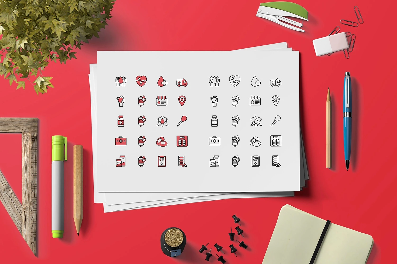 Don't miss it ** Blood Donation - Icons** This professional Icons pack, high quality, for professional designers, easy to use, fully editable & customizable in Adobe Illustrator