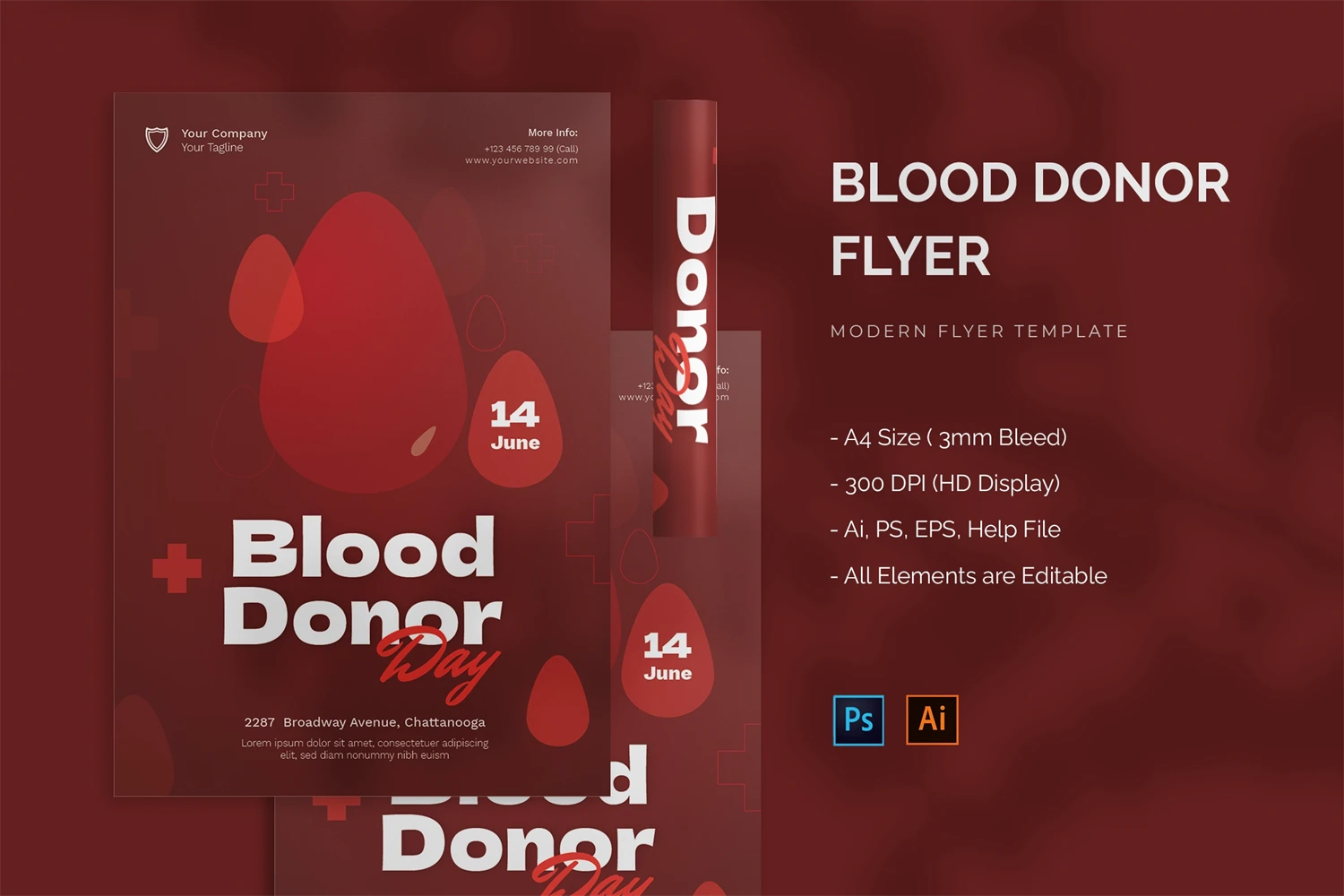 Blood Donor - Flyer. This Flyer template is designed for your company's business needs. very clean and elegant, and also easily edited and adjusted to your liking