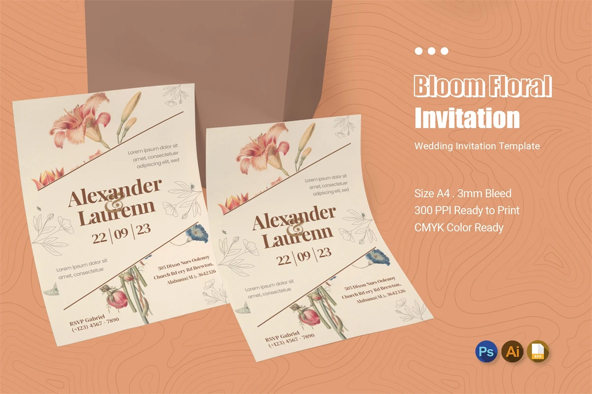 Celebrate your beautiful day with this beautiful wedding invitation template. Our wedding invitation templates will make your guests feel amazed and spread happy vibes. This template is obviously easy to use and customize.