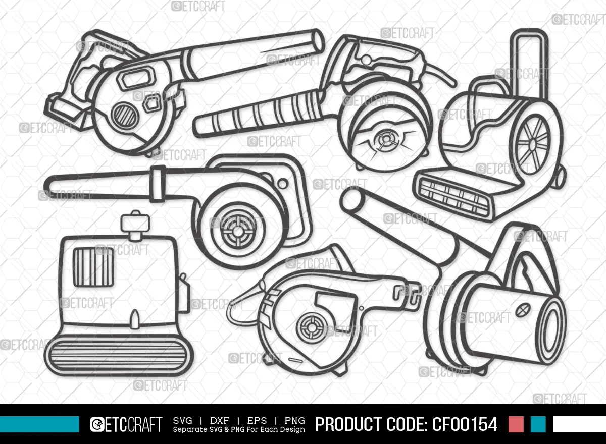 Unleash the power of outdoor cleanup with our Blower Machine Outline Electric Leaf Vacuum SVG Cut File Bundle. Dive into the world of efficient leaf blowers with meticulously crafted clipart files, perfect for gardening enthusiasts, DIYers, and creators seeking a touch of outdoor utility. Explore the seamless integration of these versatile designs into your creative projects.