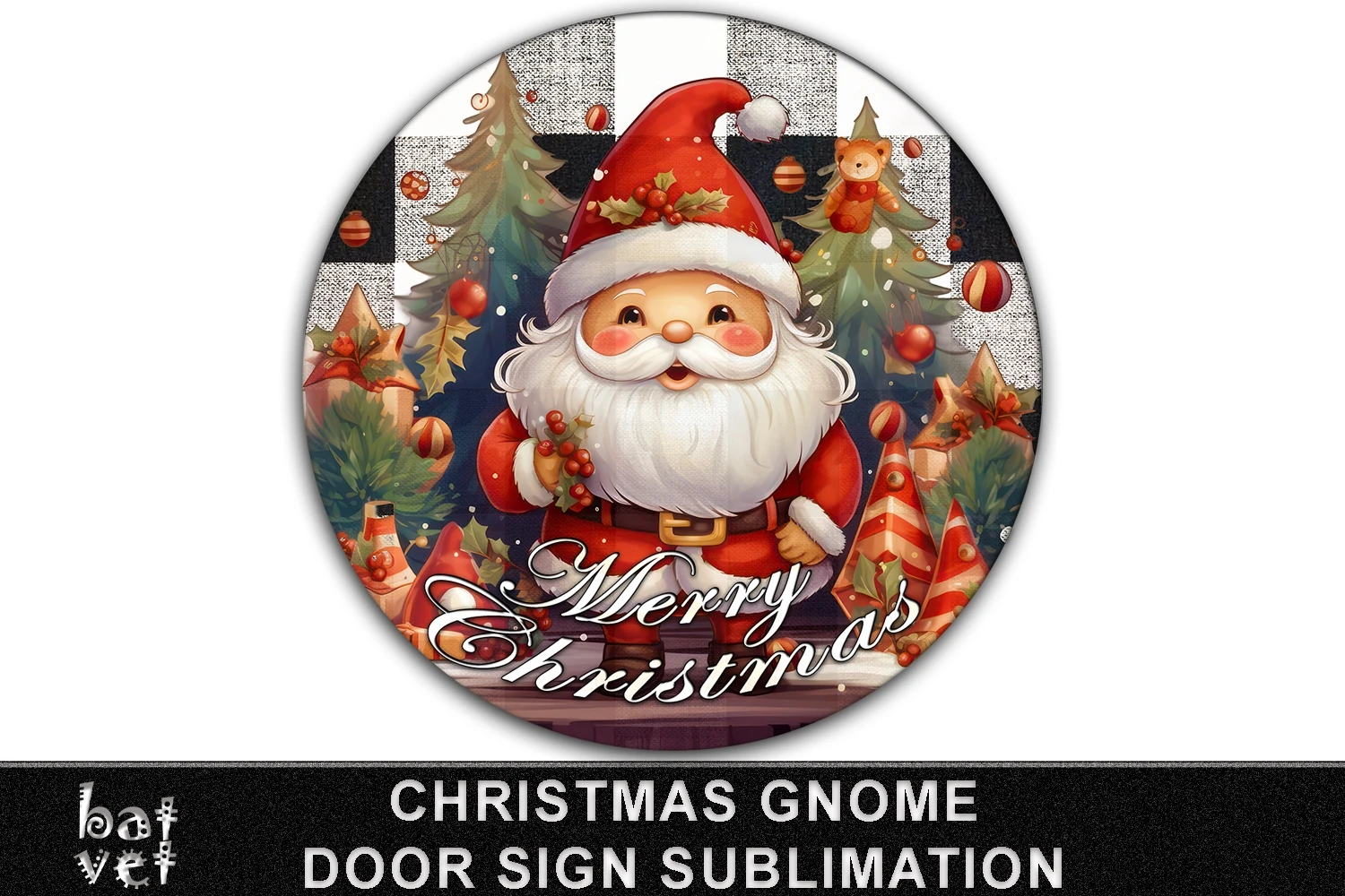 Merry Xmas Door Sign, Merry Christmas, Christmas Gnome, Christmas Trees, Plaid Sublimation Design.