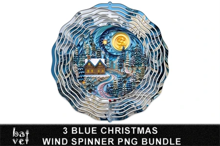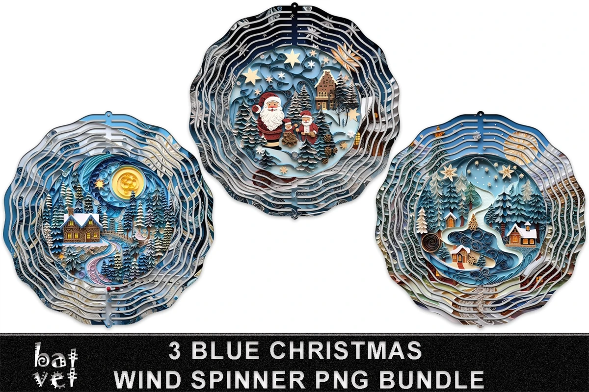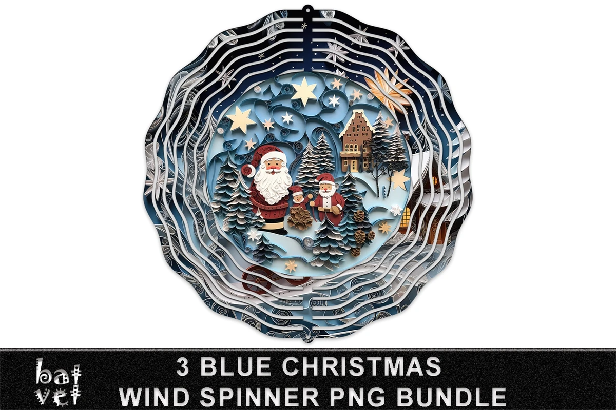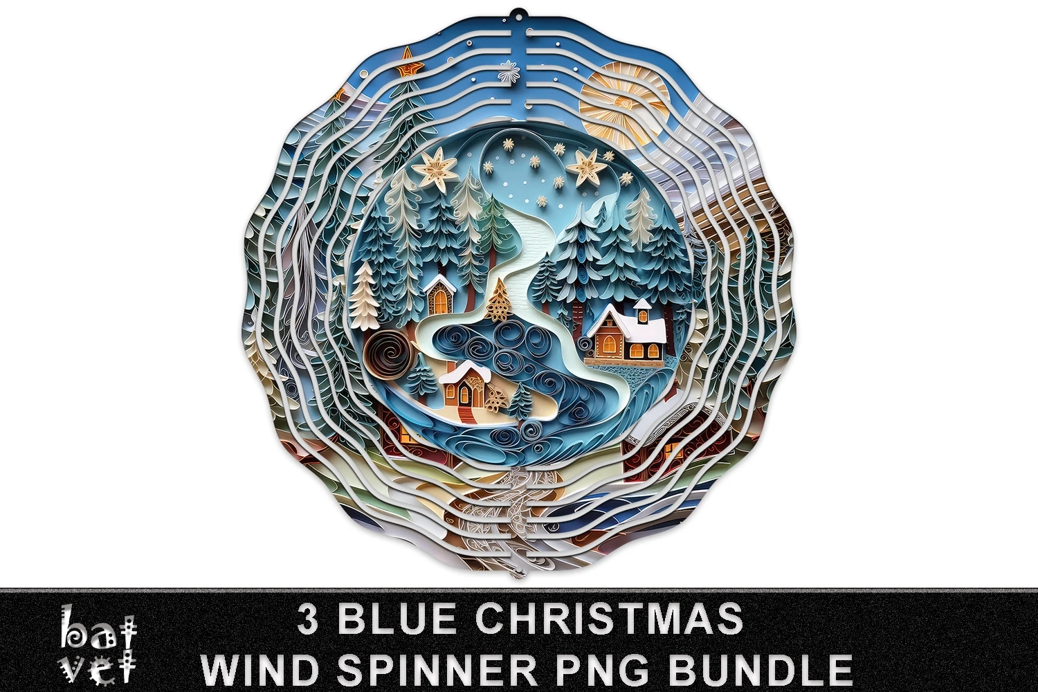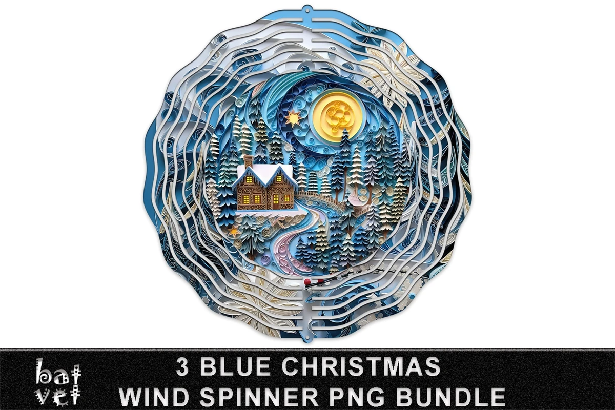 Wind Spinner Quilling Design, Blue Christmas Theme Sublimation Bundle.