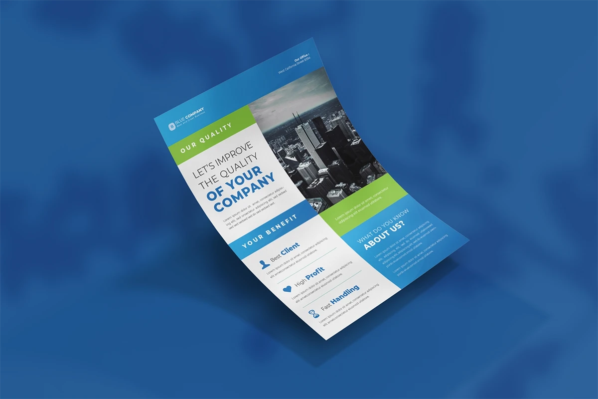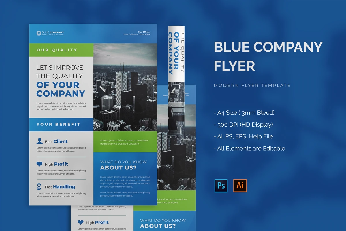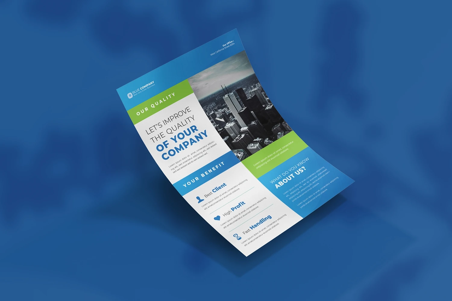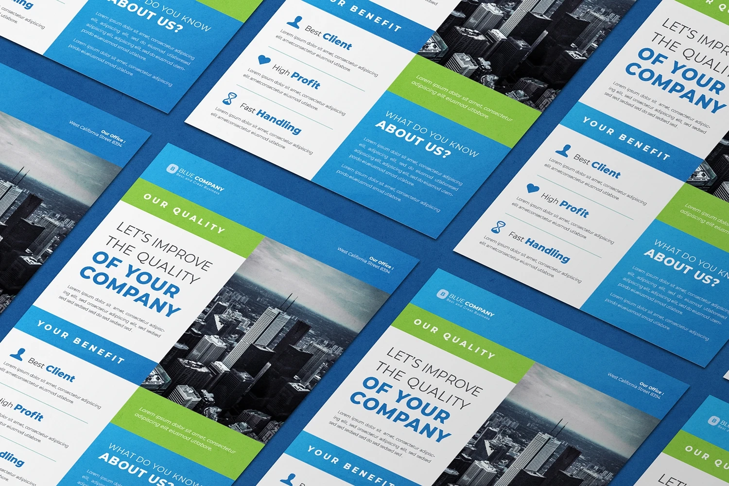 Blue Company - Flyer. This Flyer template is designed for your company's business needs. very clean and elegant, and also easily edited and adjusted to your liking