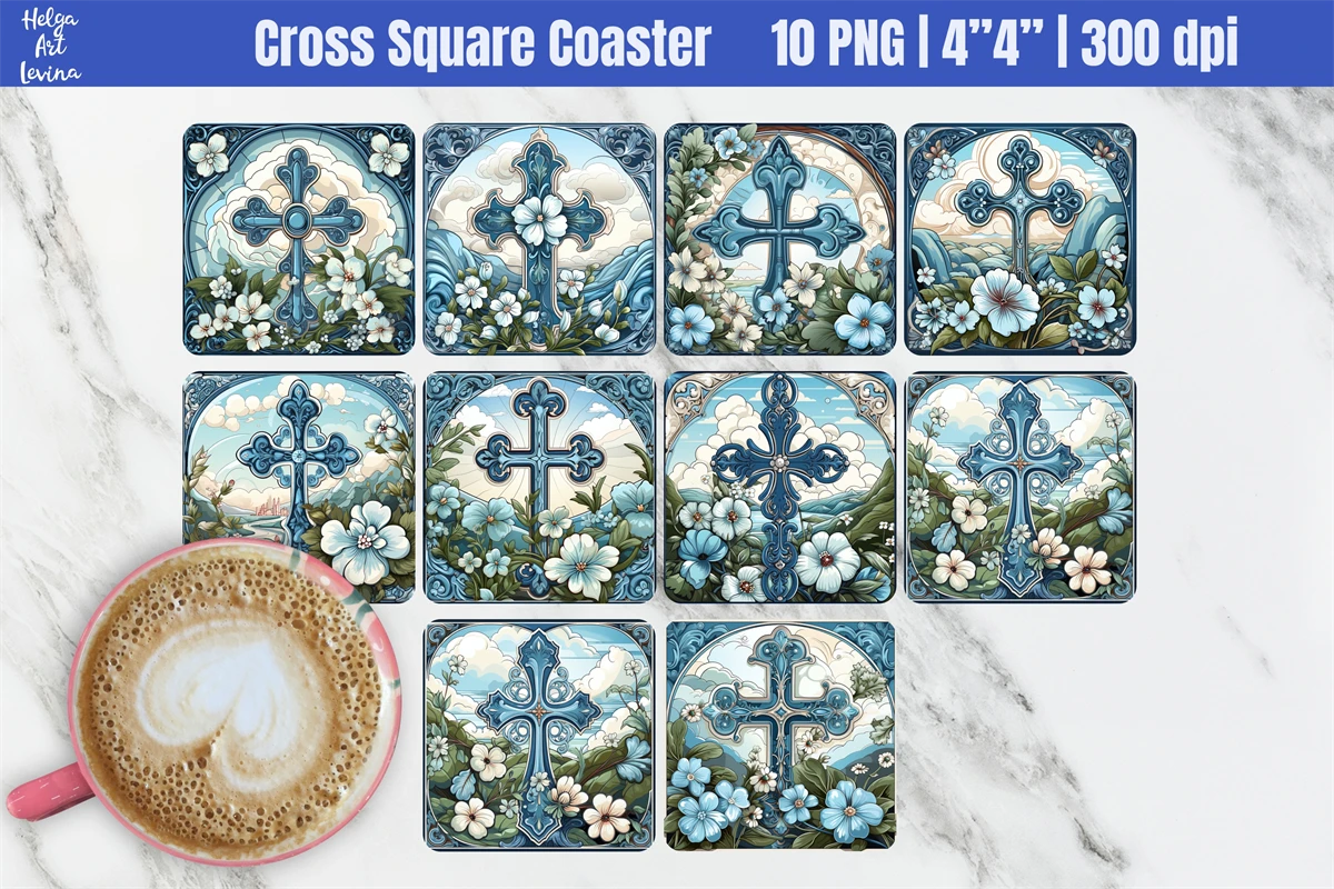 Blue Cross Square Coaster Sublimation