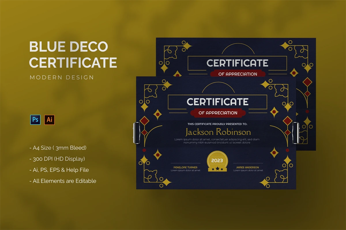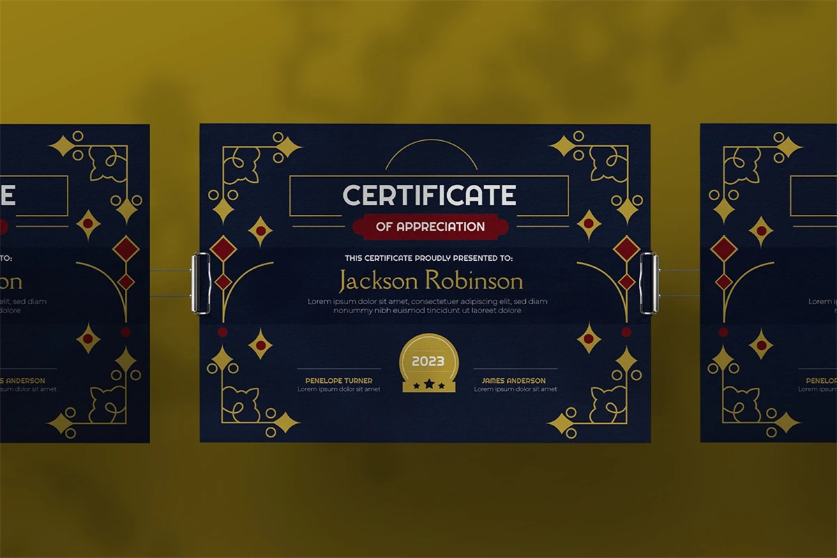 Honor individuals or groups with a certificate that's more than just paper; it's a lasting memory of a job well done. With a classic layout and customizable elements, this certificate design template is a testament to the hard work and dedication that have led to success.
