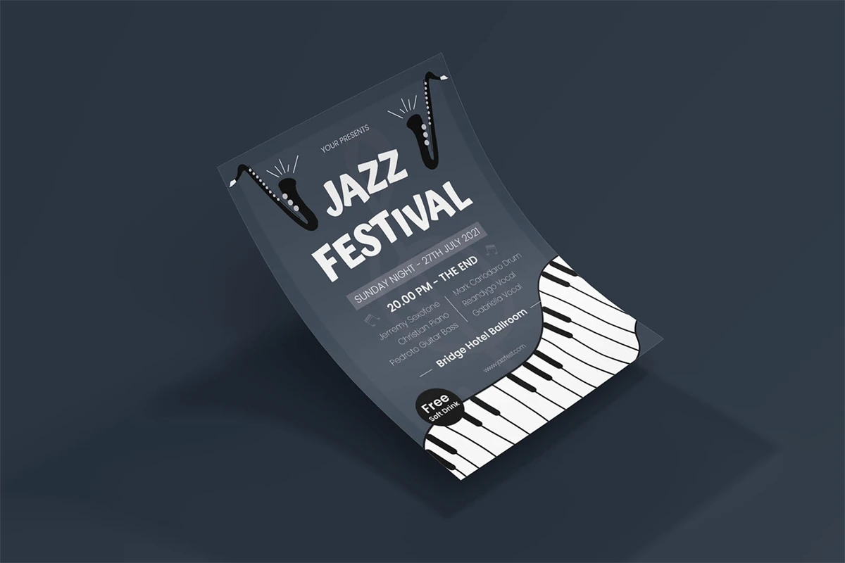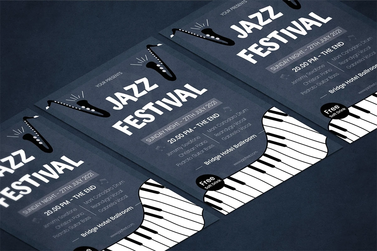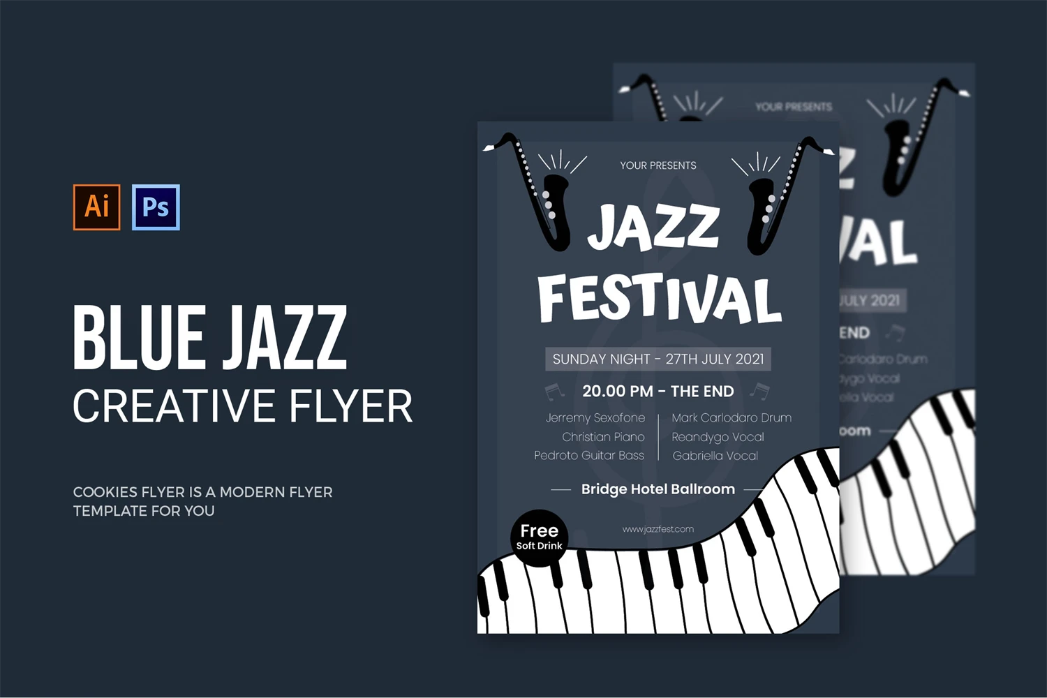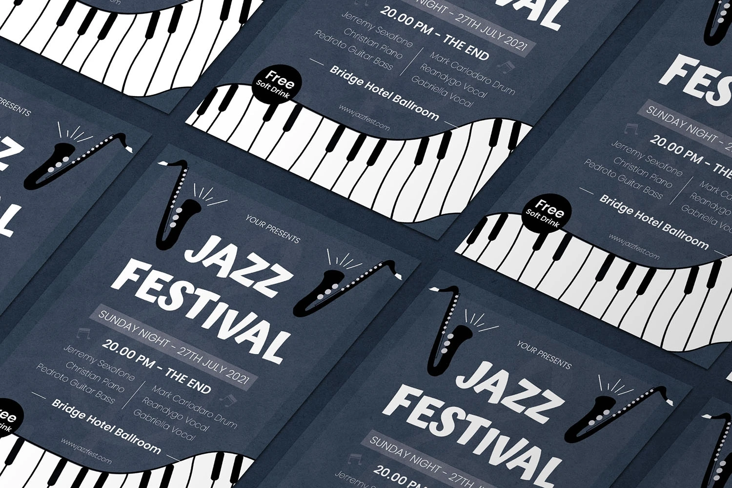 Blue Jazz Festival - Flyer. This Flyer template is designed for your company's business needs. very clean and elegant, and also easily edited and adjusted to your liking