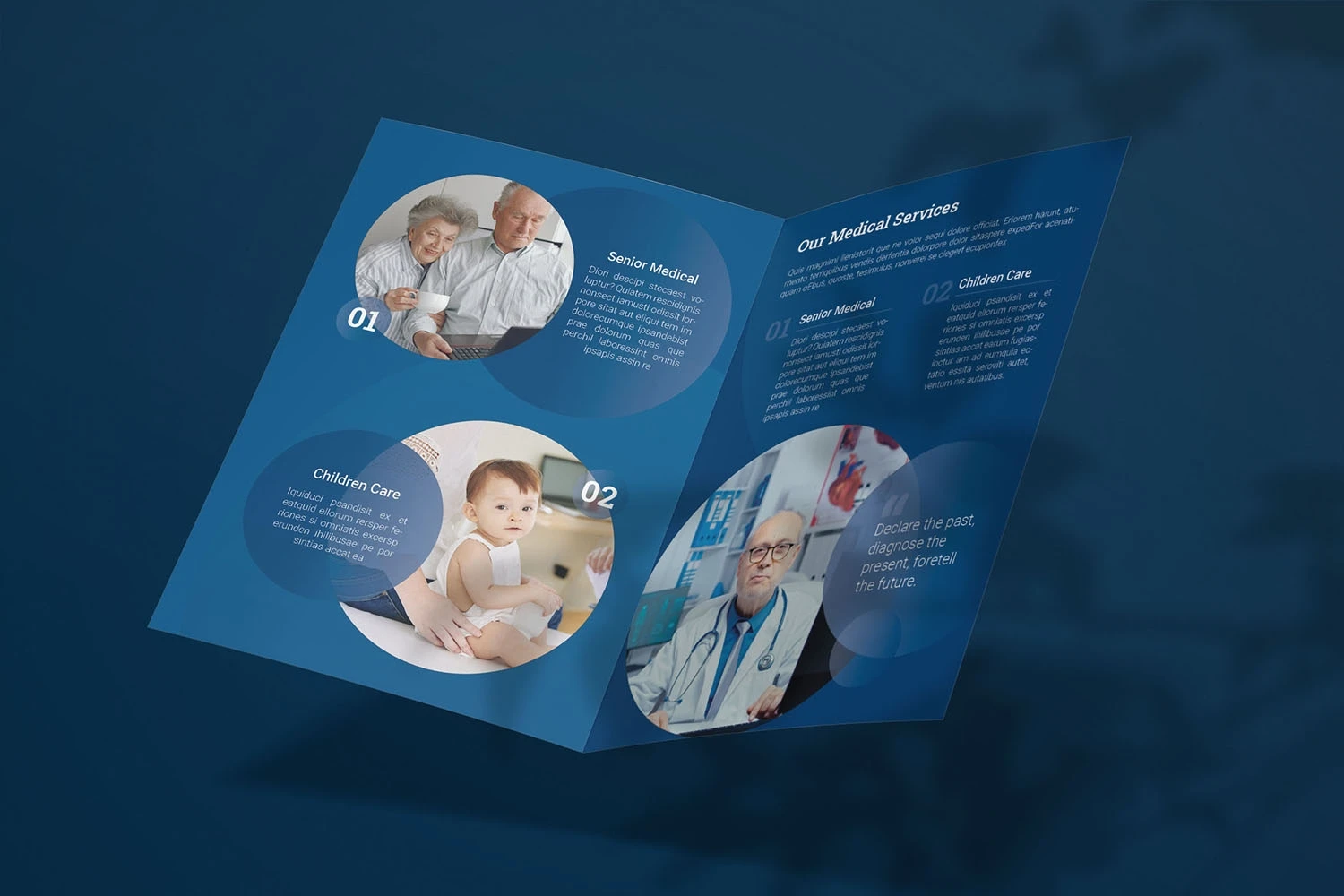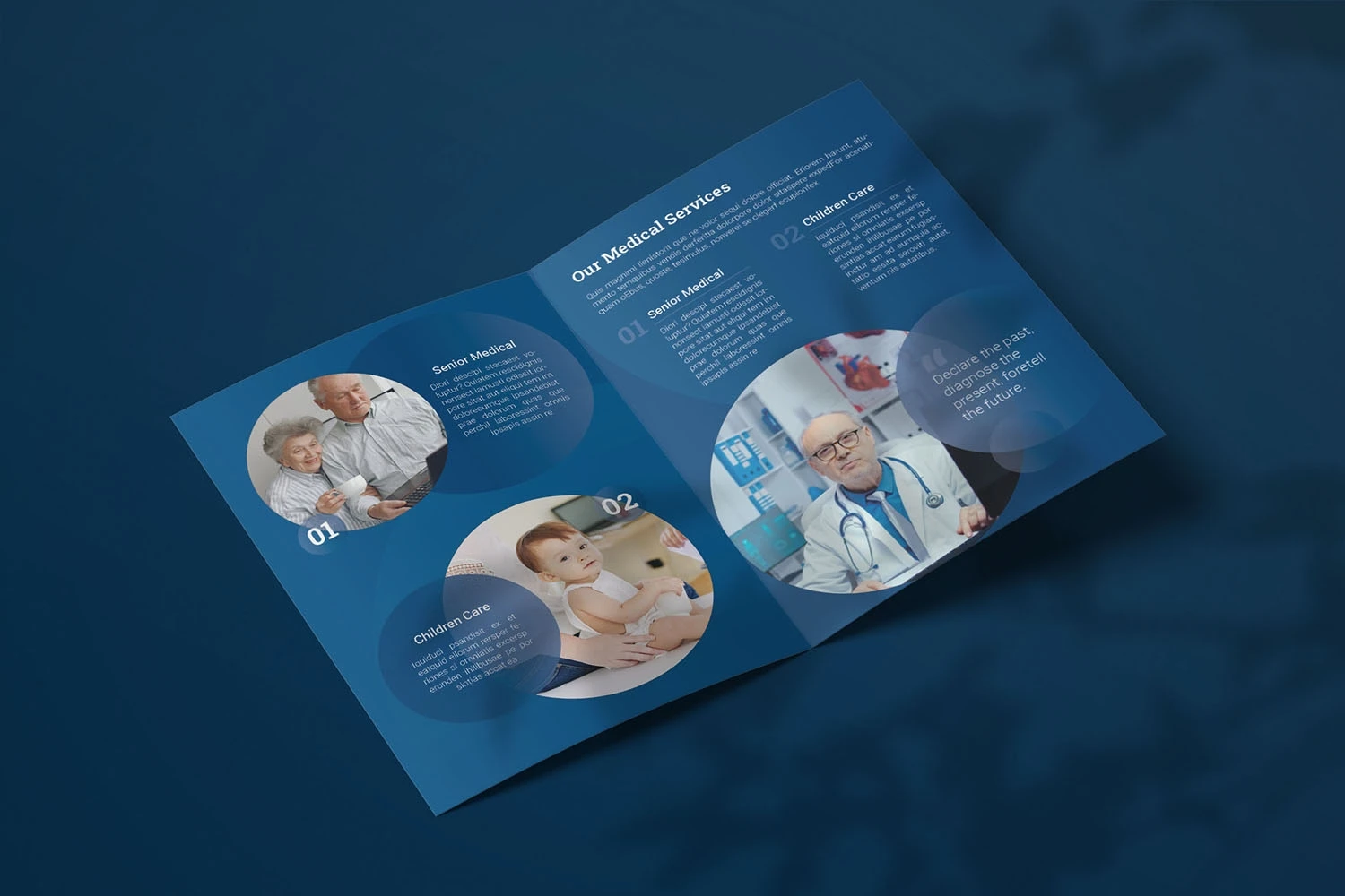 Blue Medical - Bifold Brochure We present this Bifold Brochure for you, simple and very elegant, and this Bifold Brochure is suitable for all types of your business, made with adobe inDesign, very easy to customize, Hope you Like it, dont forget to rate, Thanks.