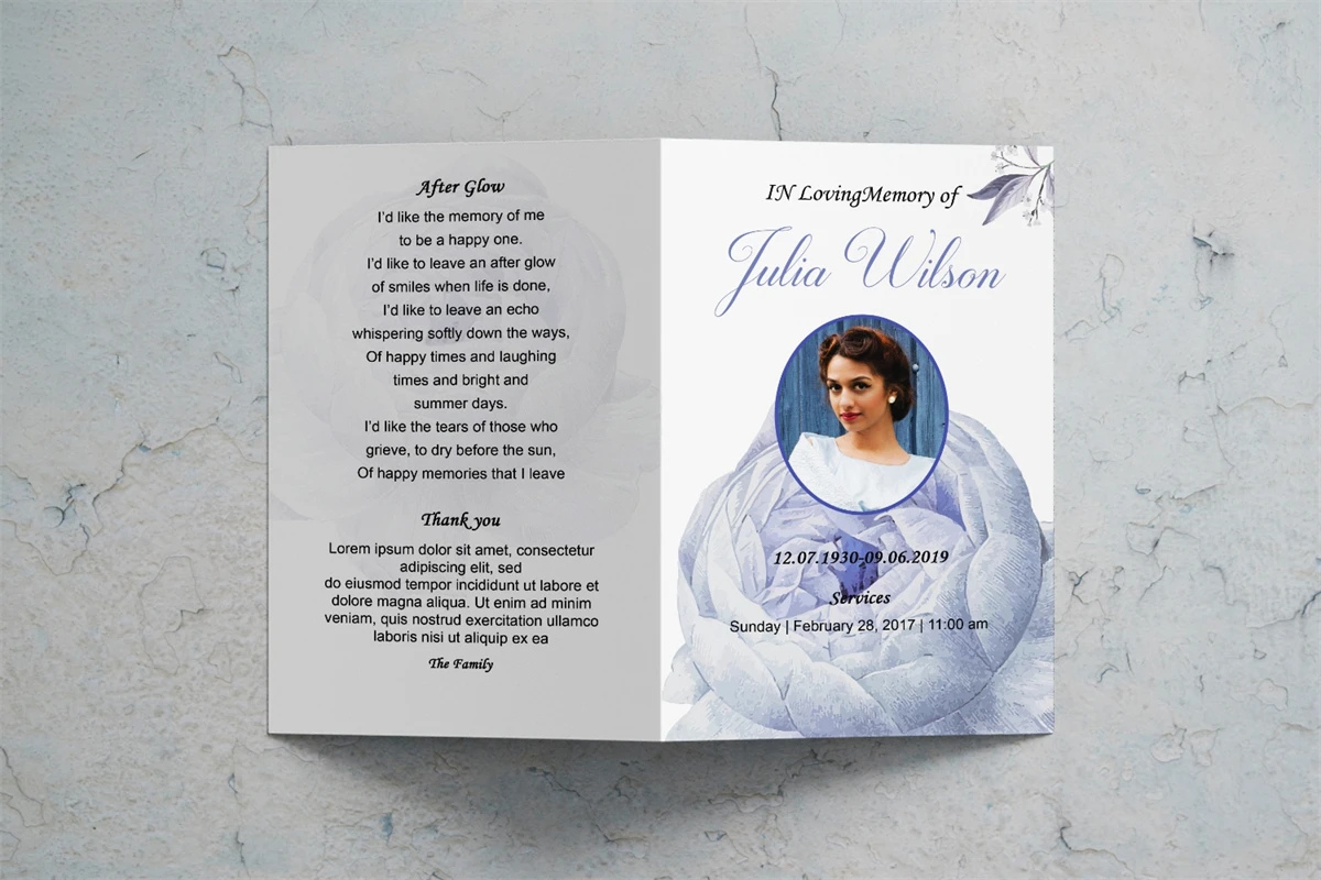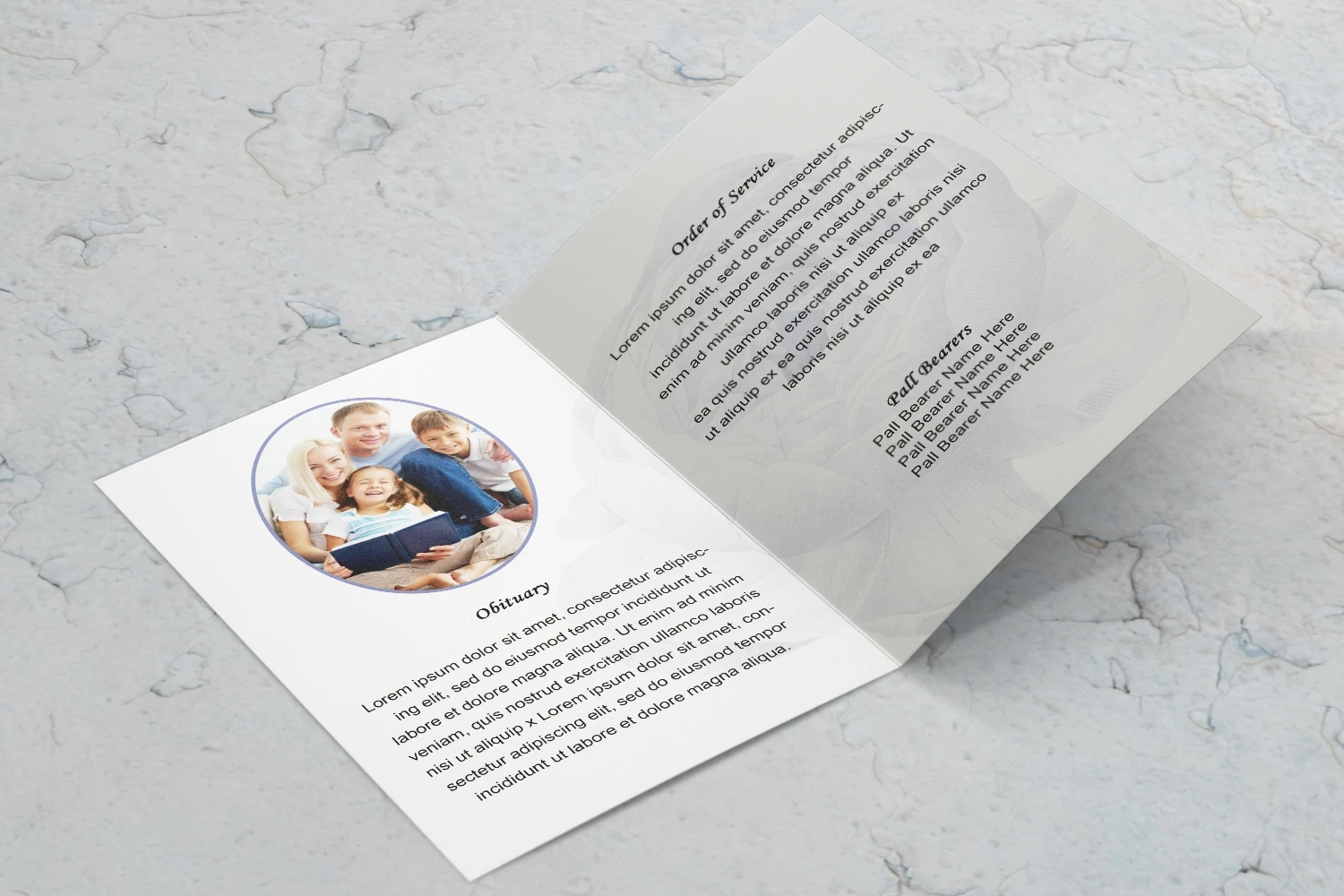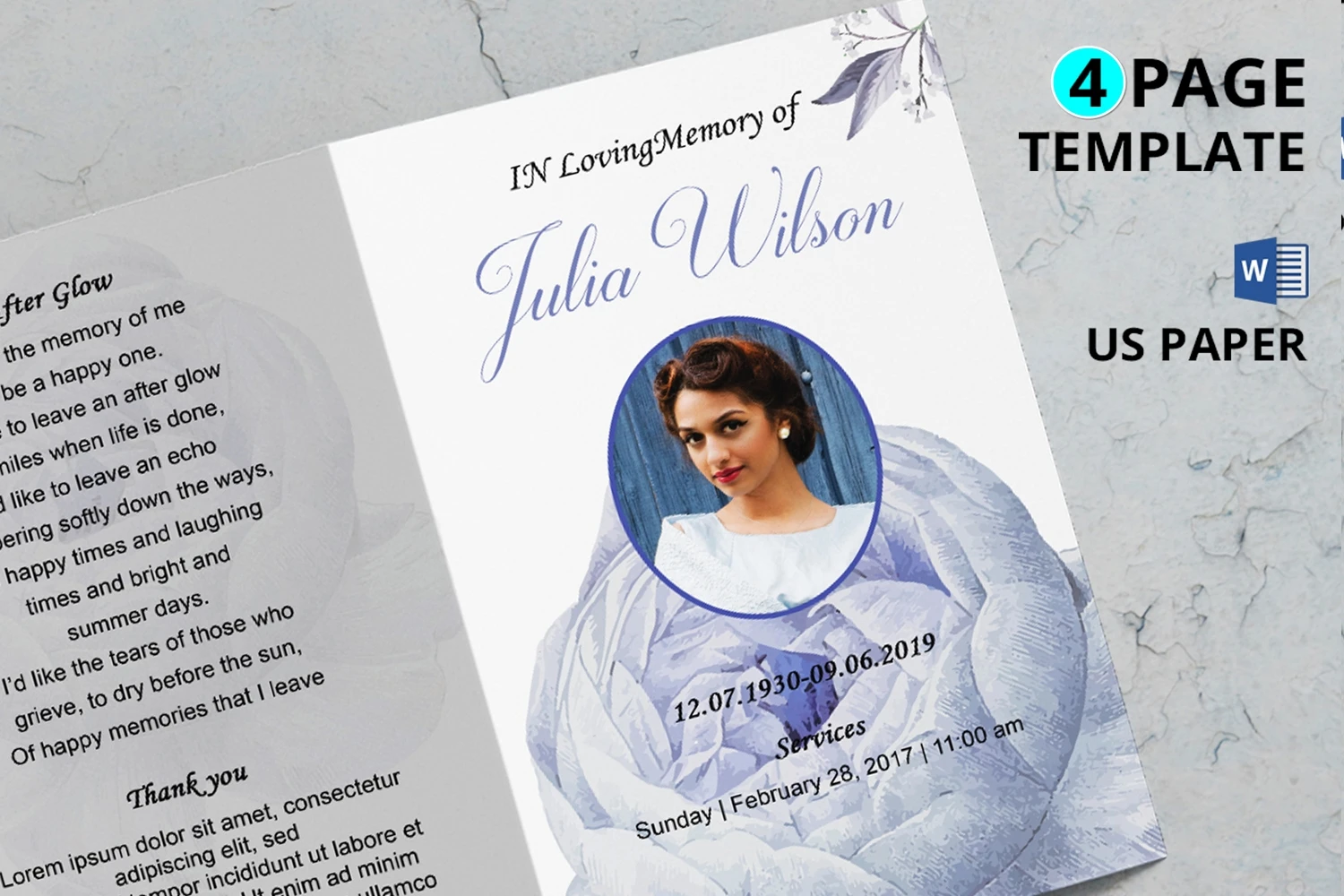 8.5x11 Inches Word, Publisher and CANVA Funeral Program Template.