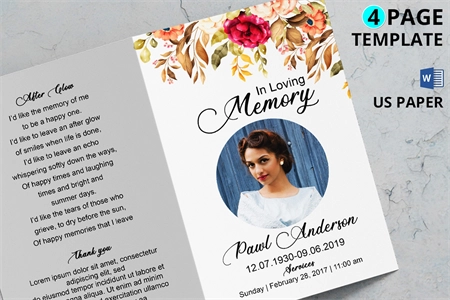 Beautiful Funeral Program template,easy to edit and print.