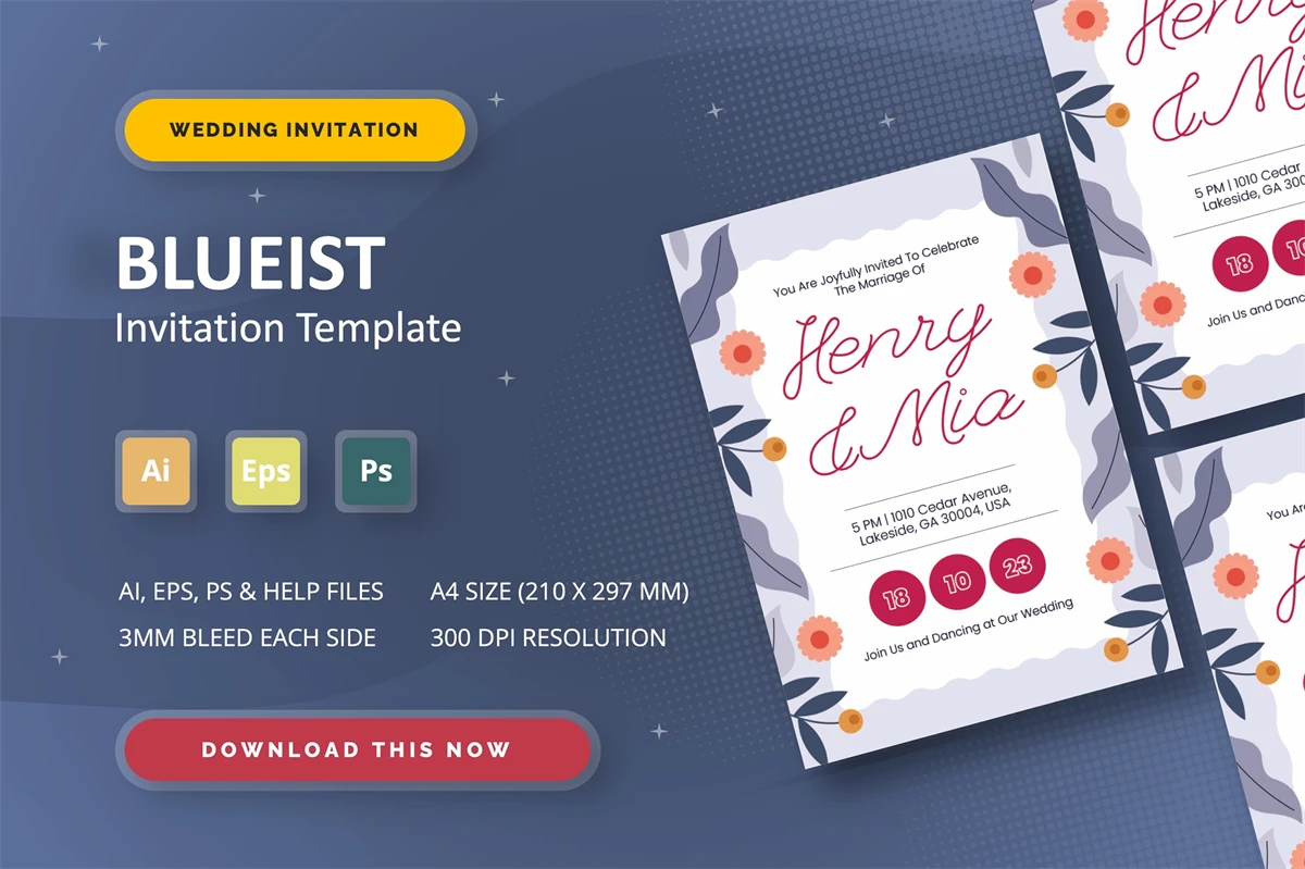 Blueist - Wedding Invitation Use this Invitation Template to celebrate special moments like baby showers, weddings, birthdays, parties, and graduations. You can easily edit the text and change the colors to suit your preferences!