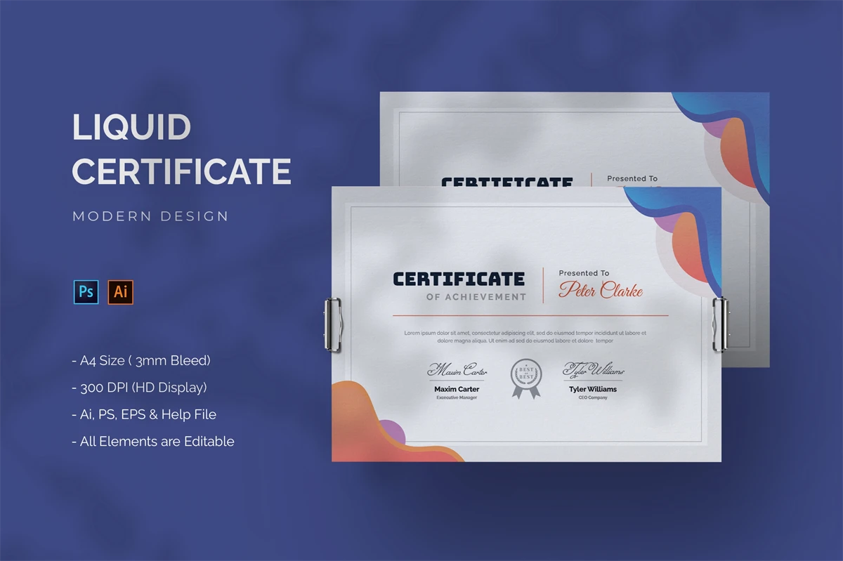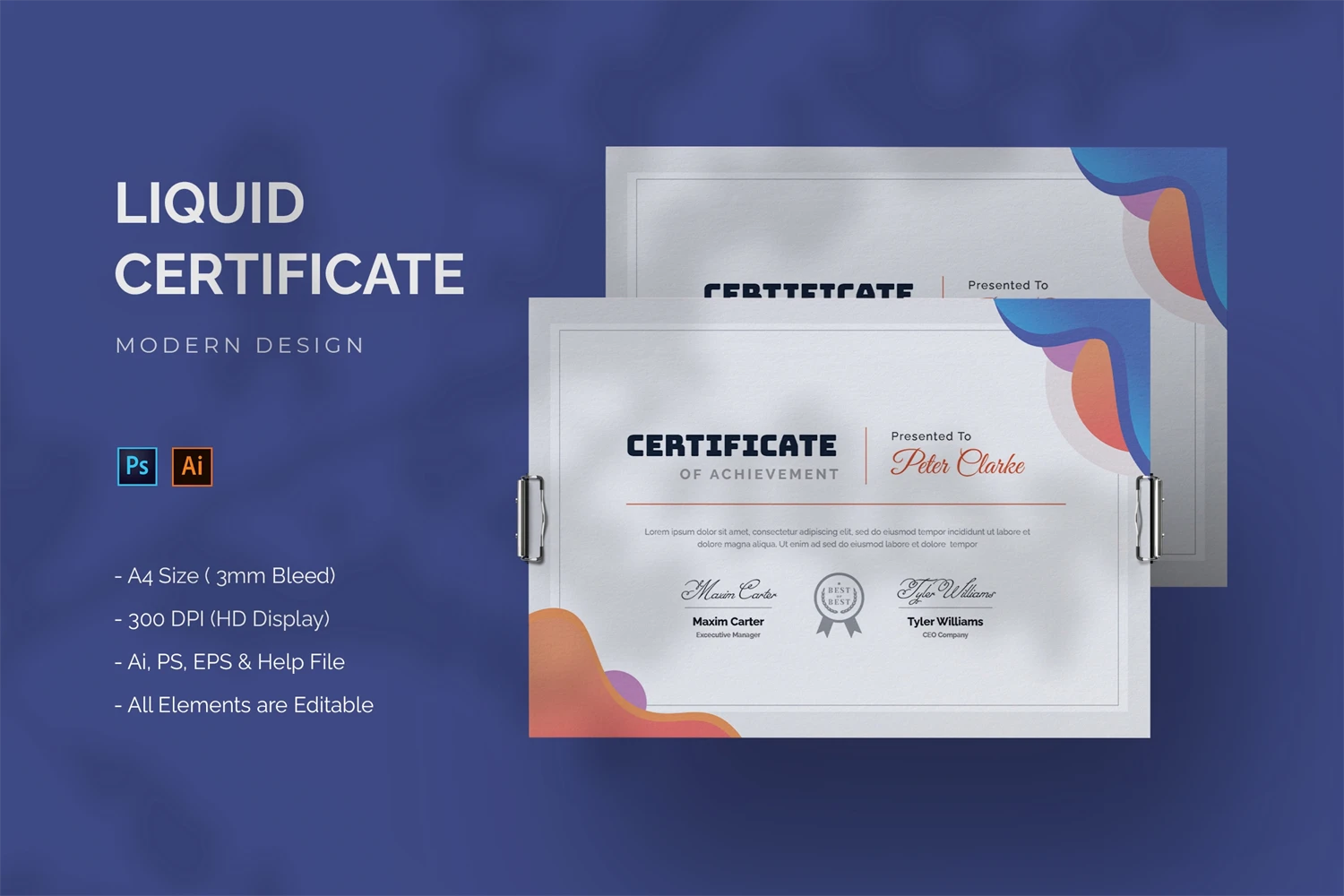 This is Bluesliquid - Certificate Get it now!, This very professional, easy to edit, can be customized to your needs,(Adobe Illustrator,Adobe Photoshop). You can use this certificate for awards, seminars, training, tournaments, I hope you enjoy for this, Hope you Like it dont forget to rate, Thanks.
