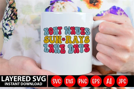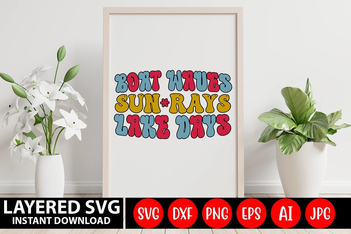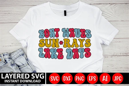 Boat Waves Sun Rays Lake Days Retro SVG Design