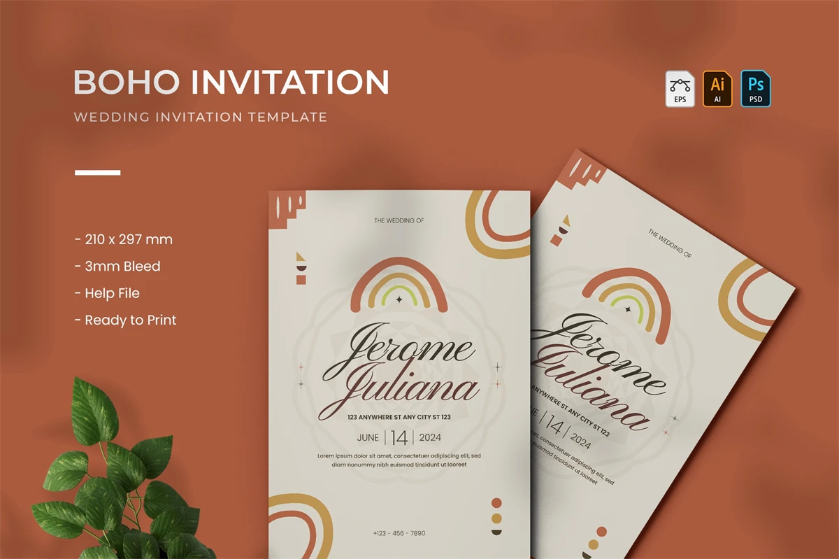 For the couple that wants to express their individuality, this wedding invitation is the right choice. In addition to the print size, we will also offer you with the digital size for Instagram Post and Instagram Story. Facebook and other social media sites also benefit from this. The accompanying AI file is fully vector, so you may scale it to any size without compromising the design.