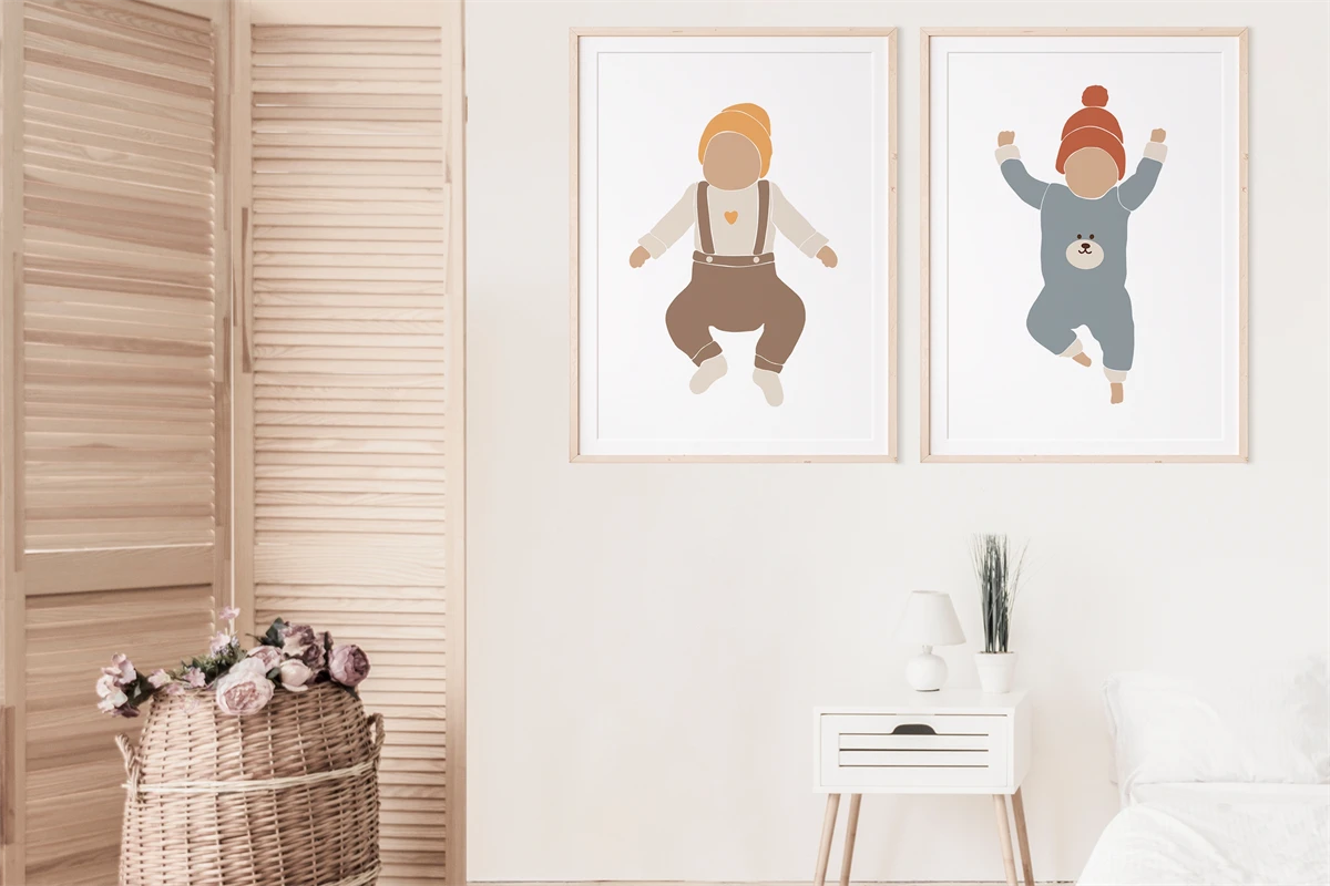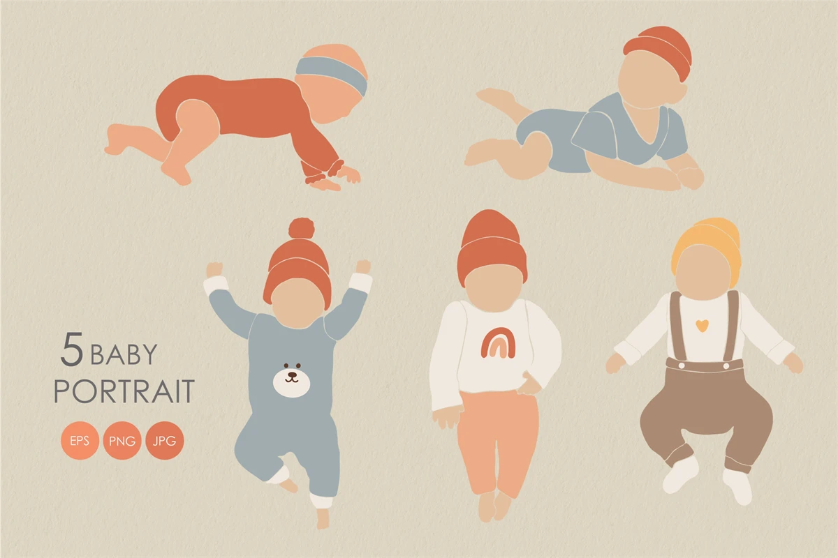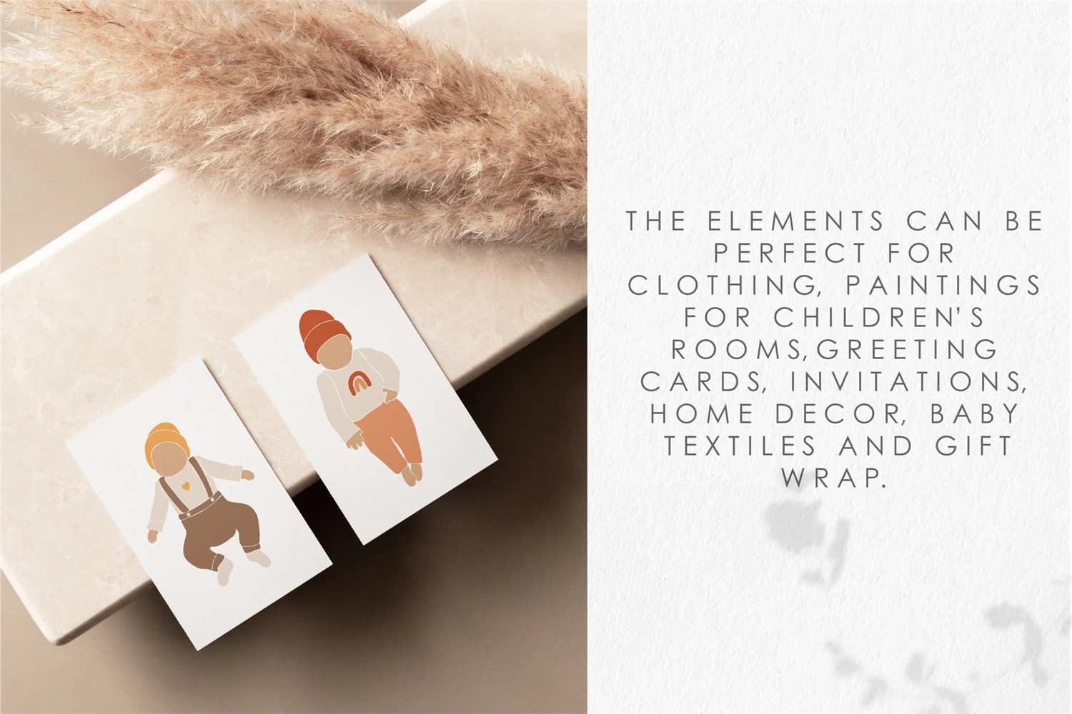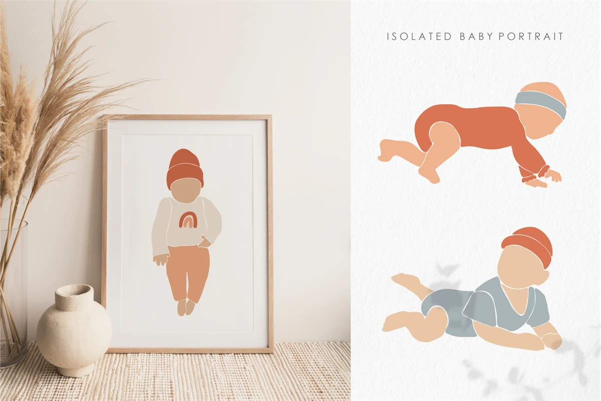 Boho baby clipart, Abstract baby portrait, Nursery baby elements