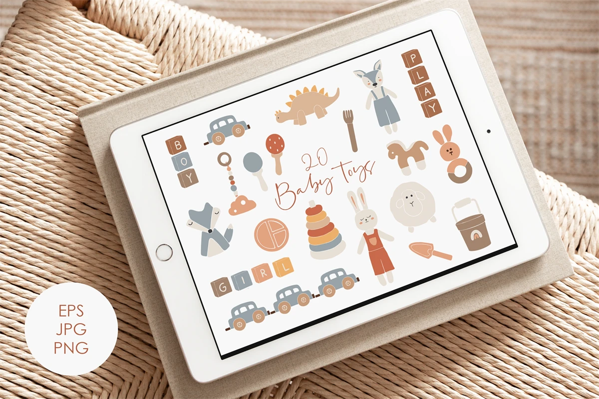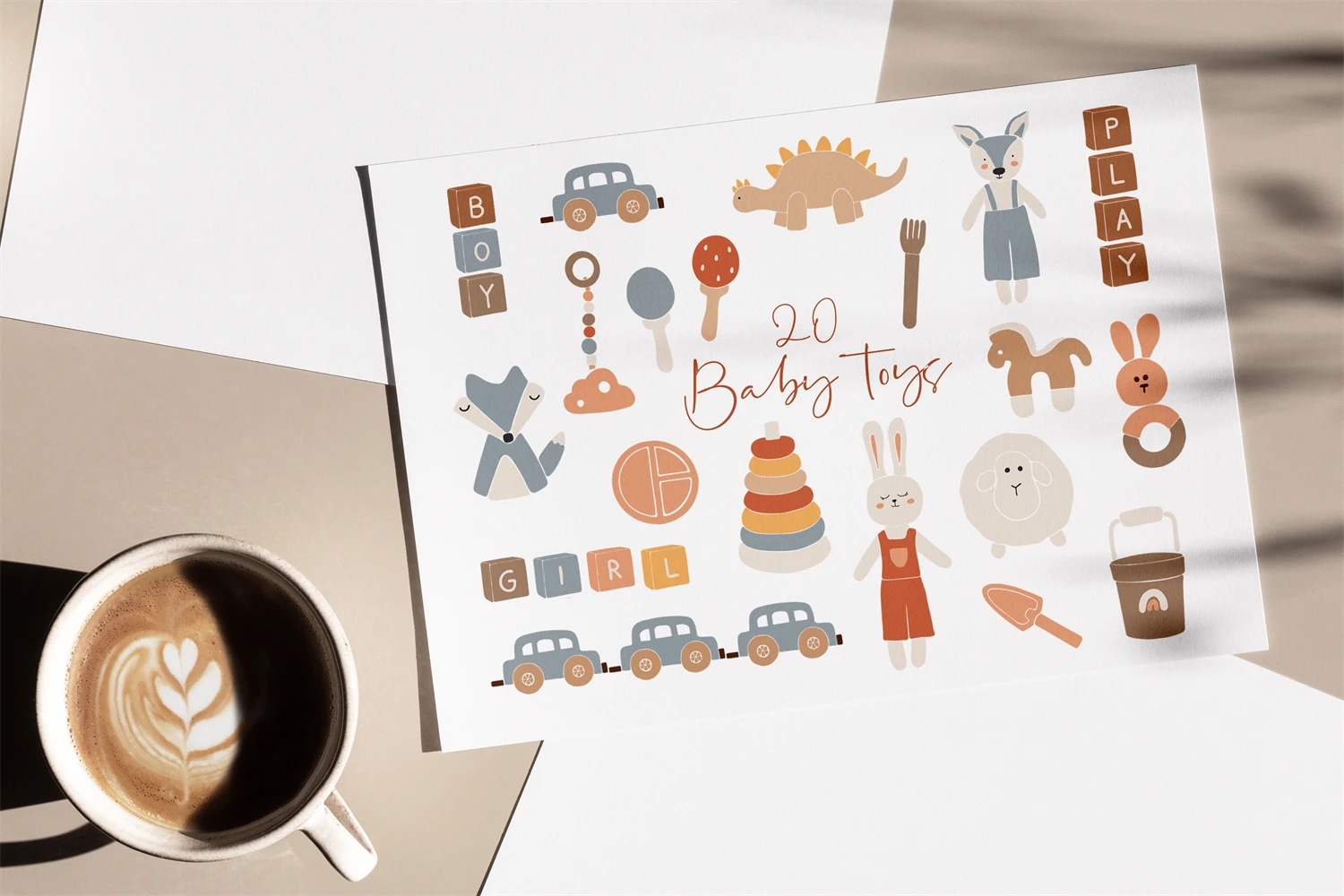 Boho baby toys clipart, 20 Abstract baby elements, Nursery Baby Clipart, Baby PNG items, Baby clipart, Child's elements