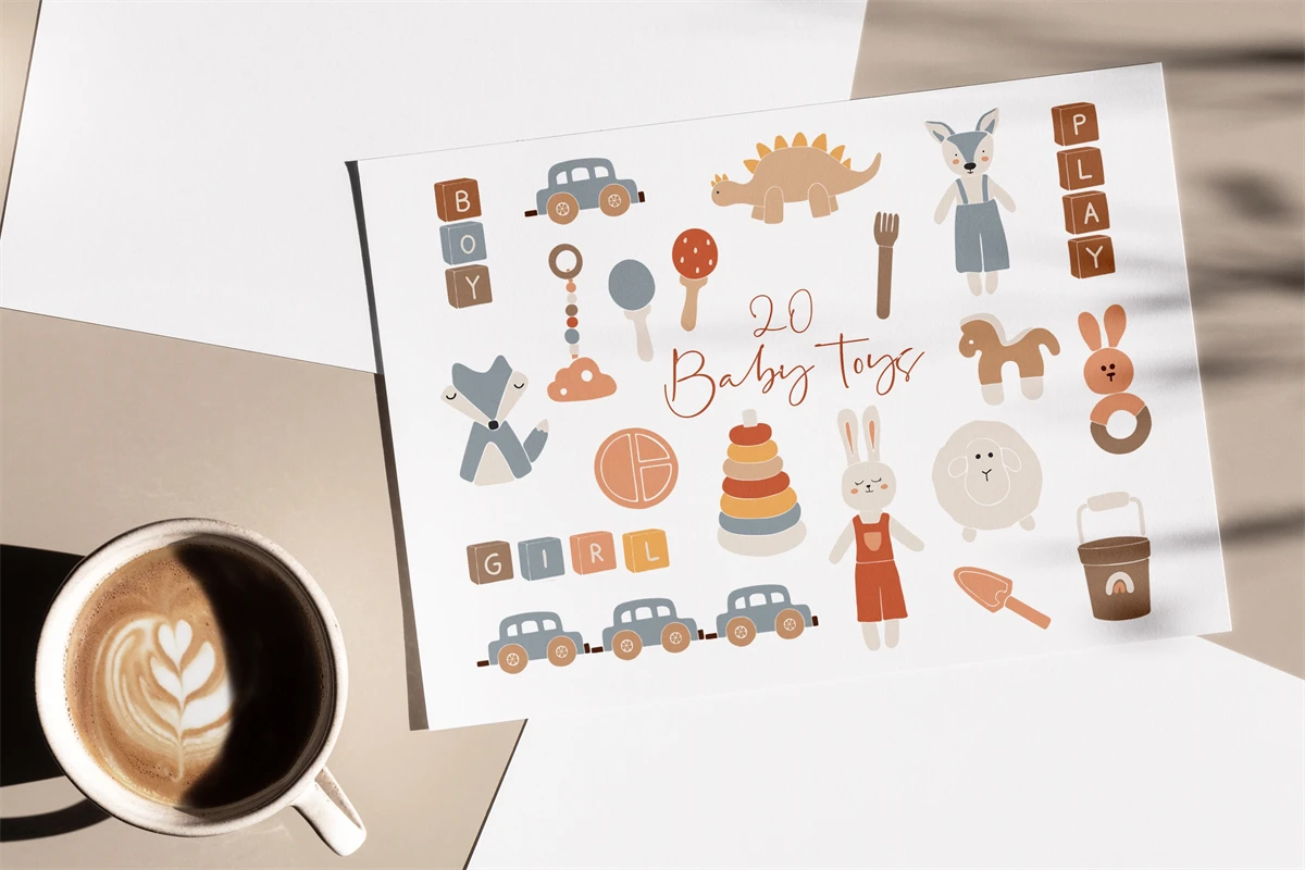 We also create the elements can be used without losing quality, they are perfect for clothing, paintings for children's rooms, greeting cards, invitations, home decor, baby textiles and gift wrap.