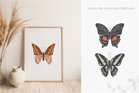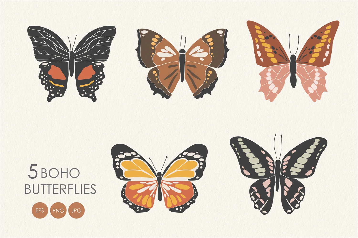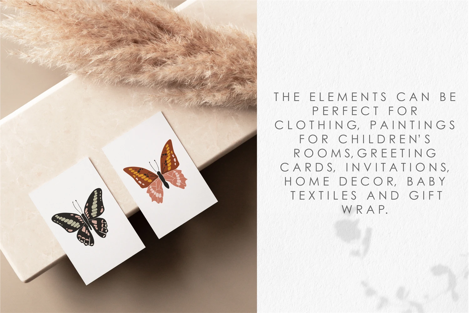 Boho butterflies clipart, Abstract butterfly elements, Digital butterflies set, Insects clipart, Animals PNG items