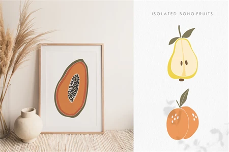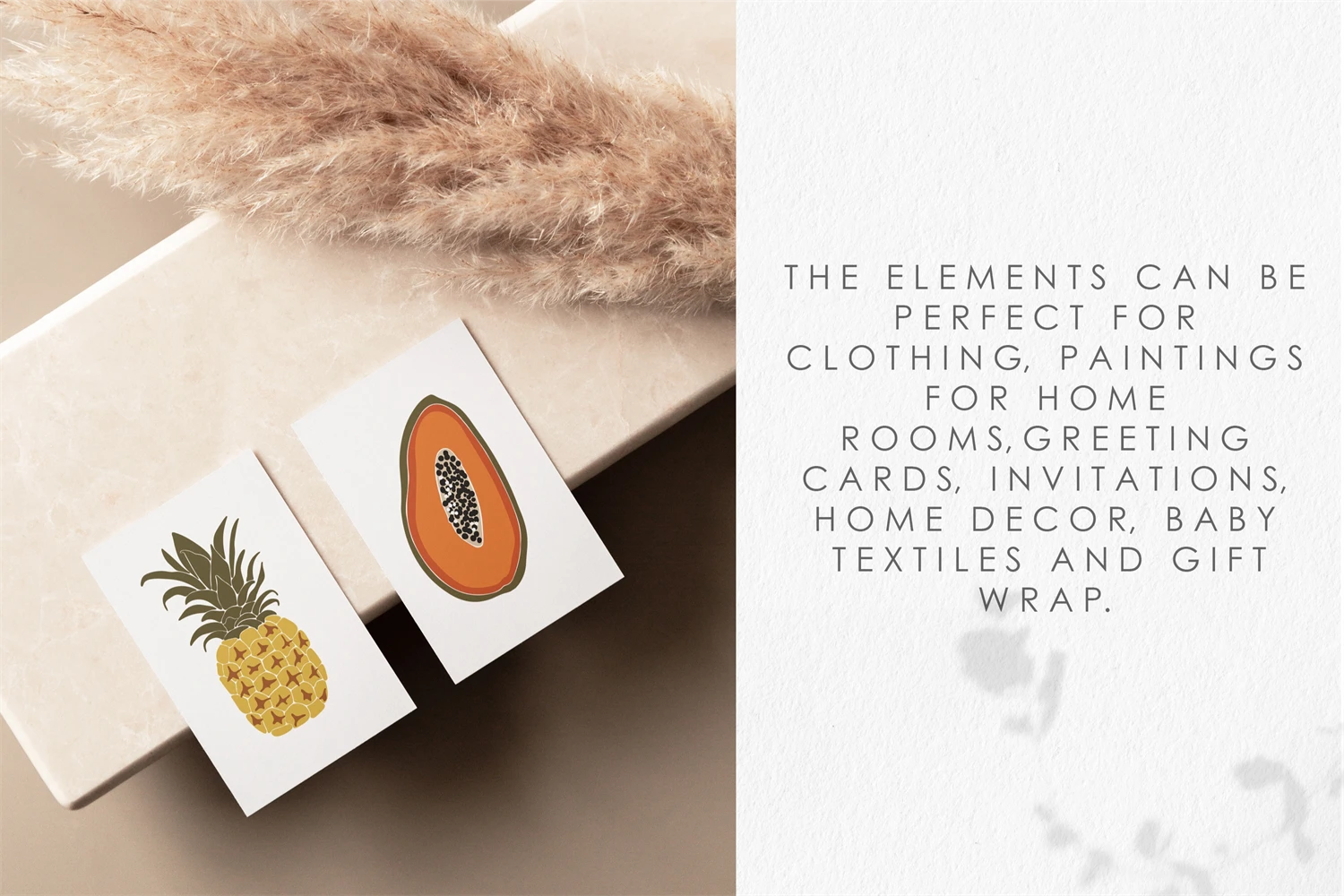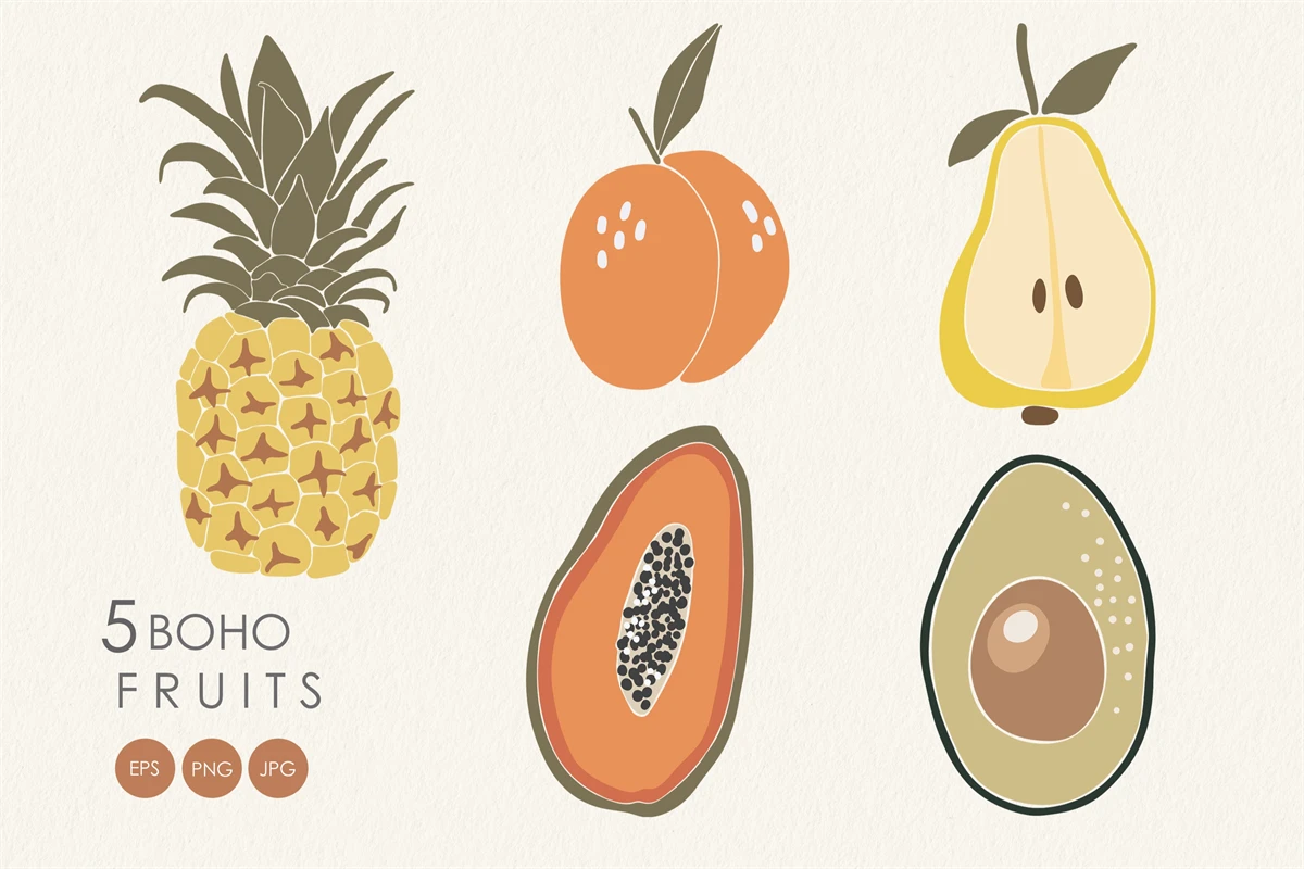 Boho fruits clipart, Tropical fruits elements, Digital summer clipart