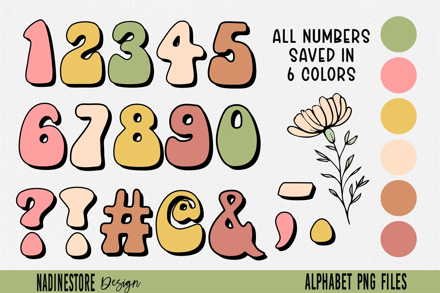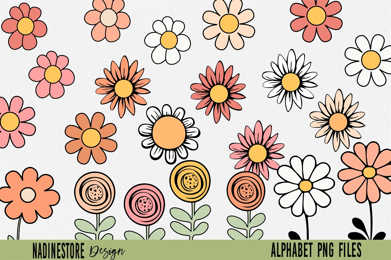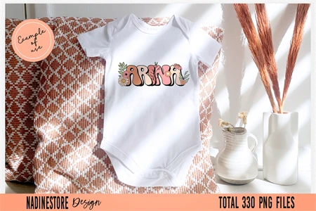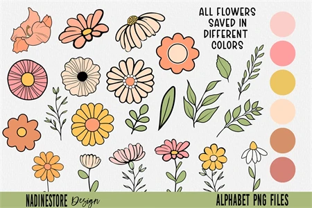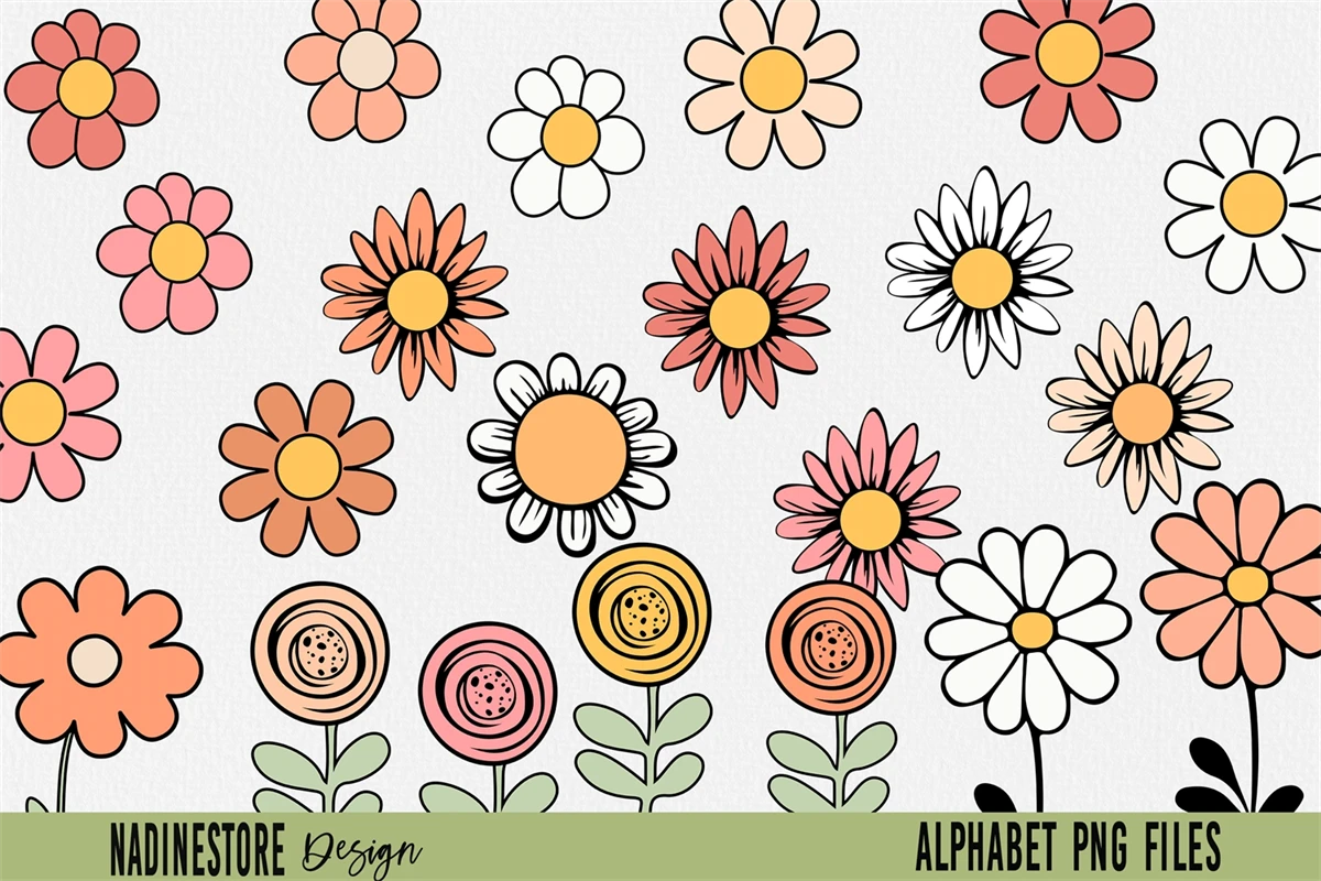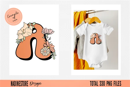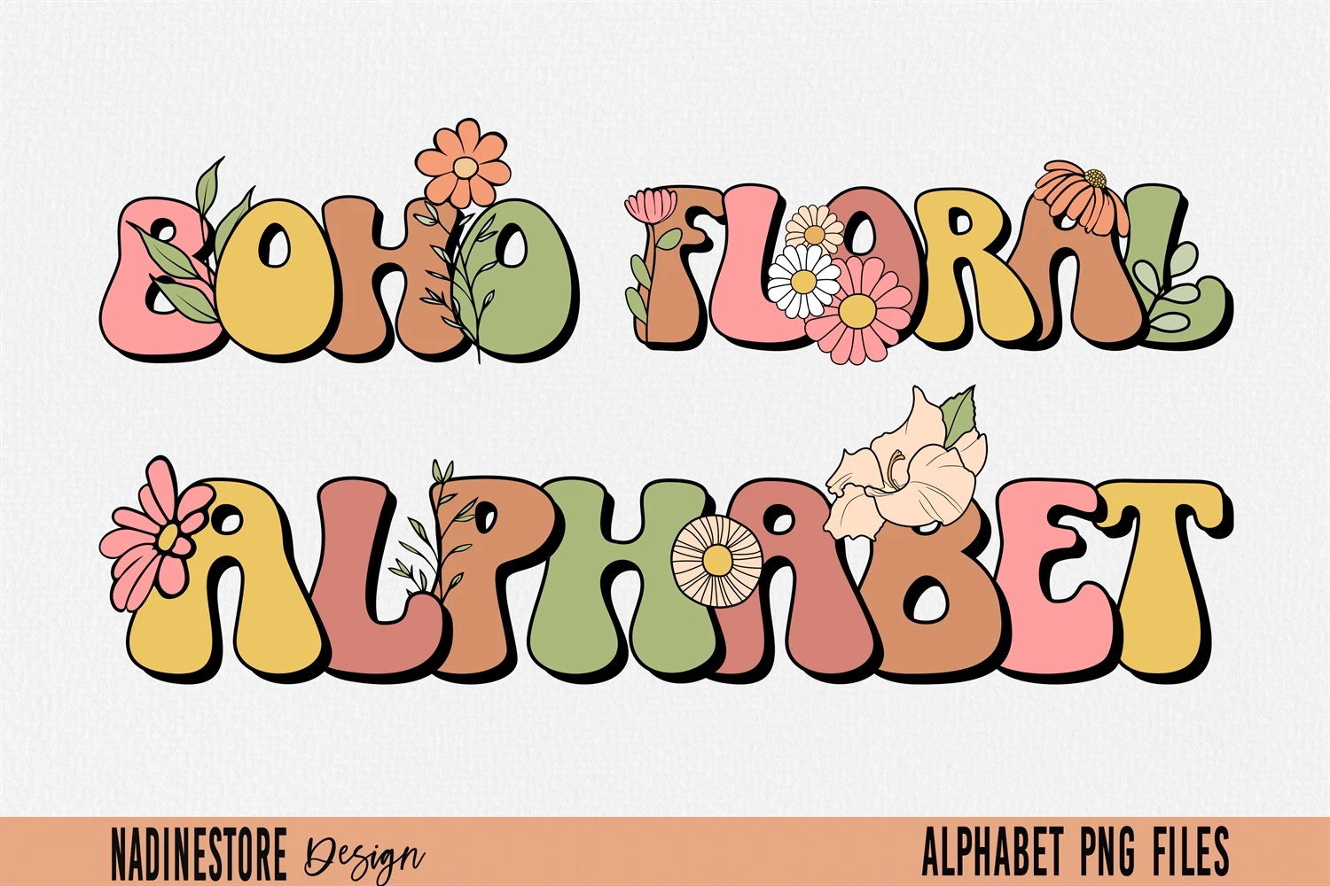 Boho Groovy Floral Alphabet ABC PNG.