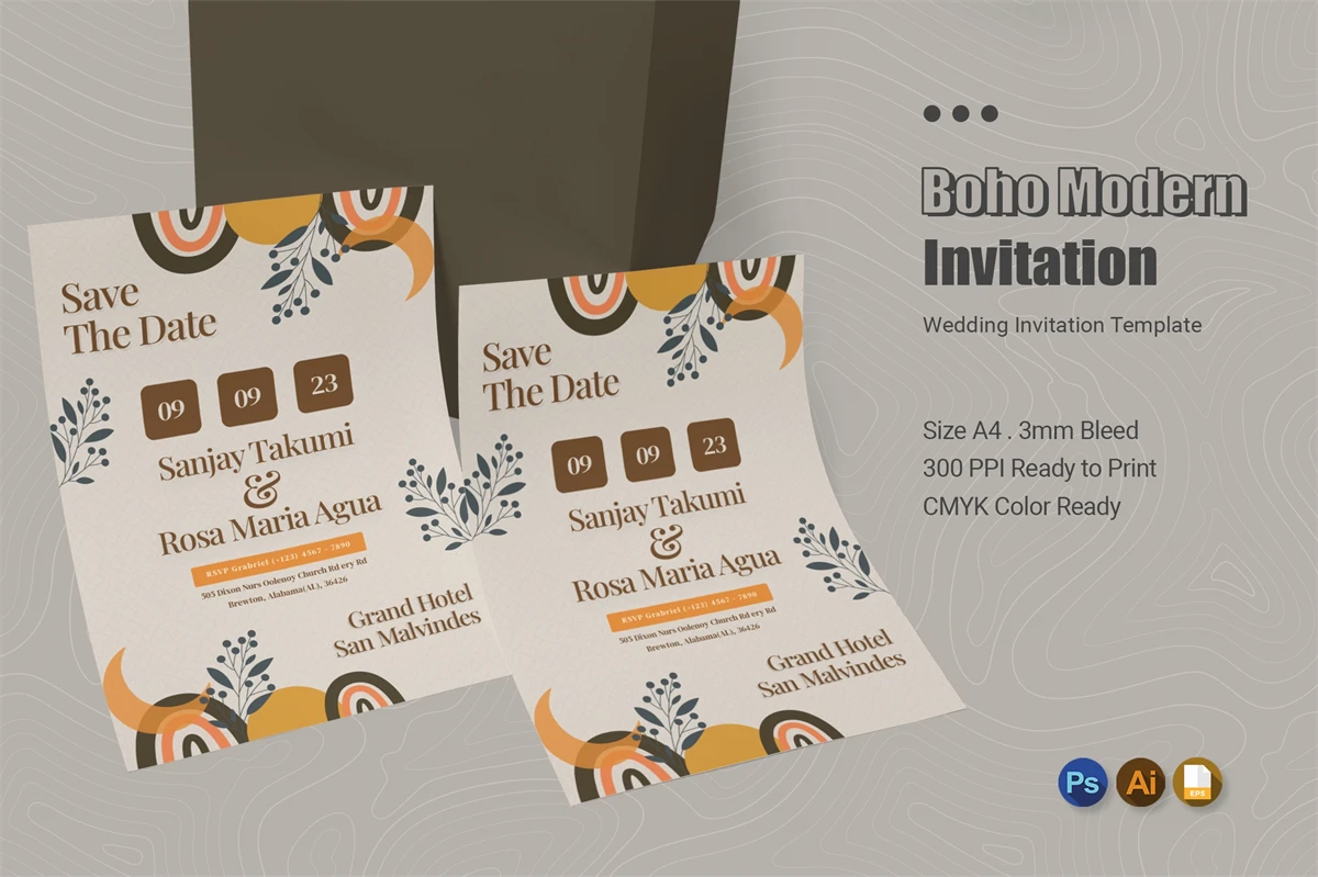 Celebrate your beautiful day with this beautiful wedding invitation template. Our wedding invitation templates will make your guests feel amazed and spread happy vibes. This template is obviously easy to use and customize.