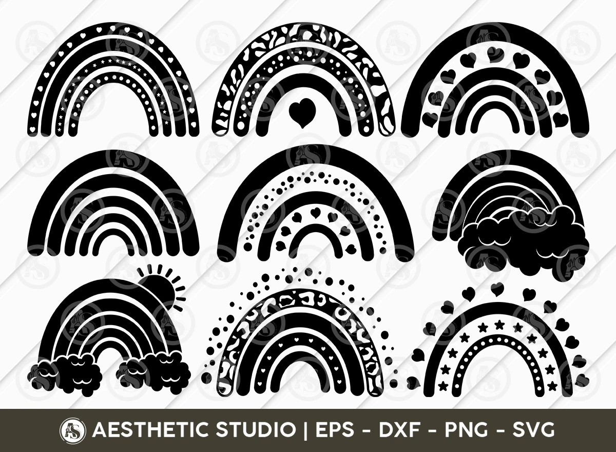 Unlock a world of vibrant, bohemian-inspired creativity with our Boho Rainbow SVG & Rainbow Silhouette Collection. This meticulously curated assortment of digital assets, available in SVG, DXF, PNG, and EPS formats, invites you to infuse your projects with the mesmerizing charm and playful spirit of a boho rainbow.