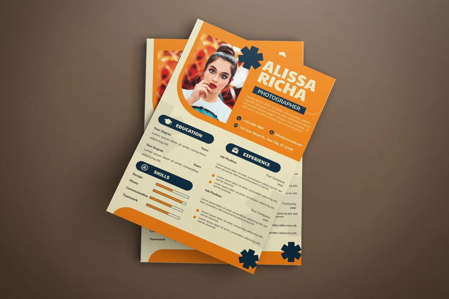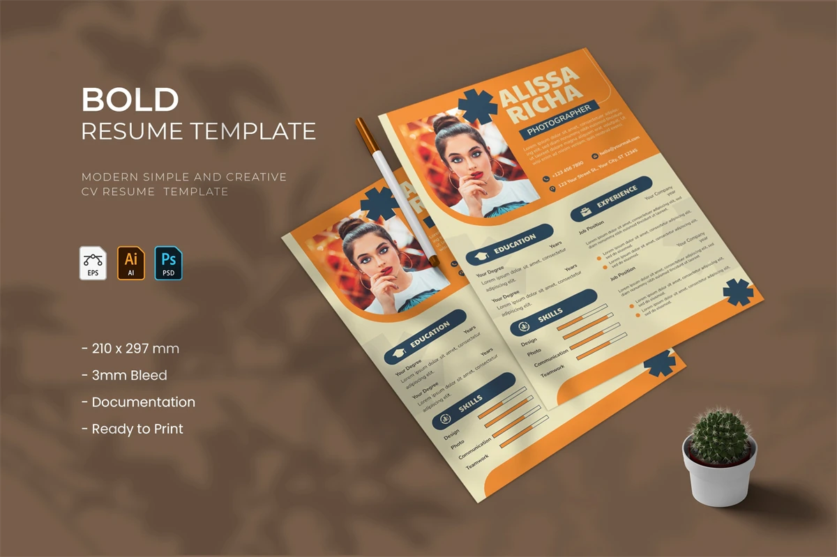 creative resume and cover letter template that will make your resume stand out from the hundreds of resumes employers get. It gives you the information you need, such as your name, contact information, social media links, education, experience, skills and interests. Also, it comes with three different color schemes.
