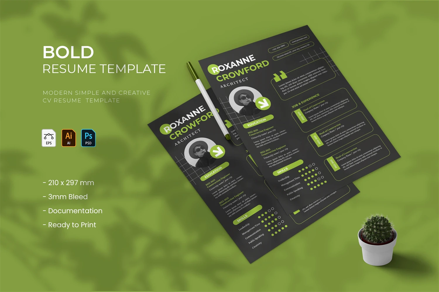 creative resume and cover letter template that will make your resume stand out from the hundreds of resumes employers get. It gives you the information you need, such as your name, contact information, social media links, education, experience, skills and interests. Also, it comes with three different color schemes.