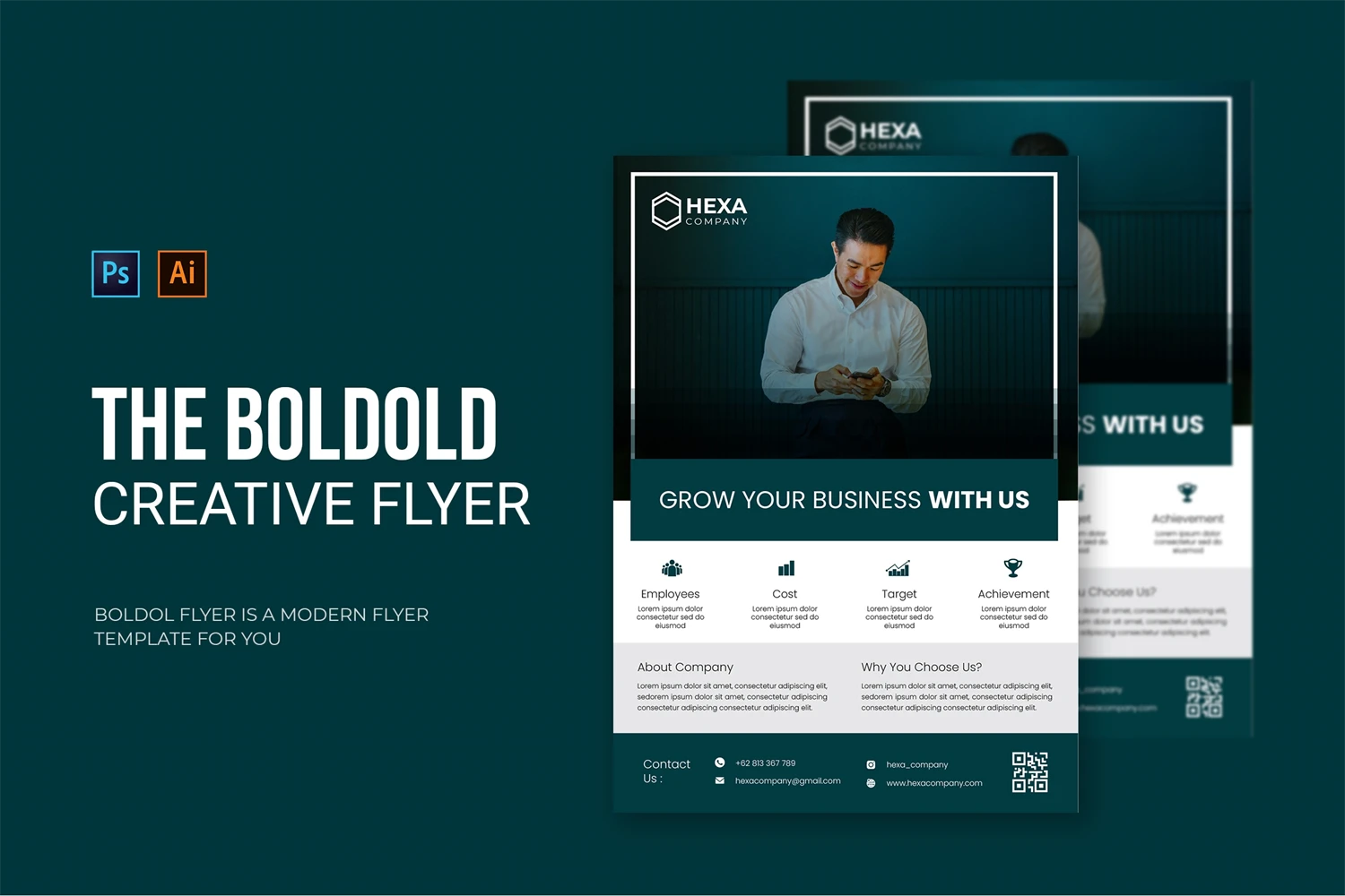Boldold Company - Flyer. This Flyer template is designed for your company's business needs. very clean and elegant, and also easily edited and adjusted to your liking