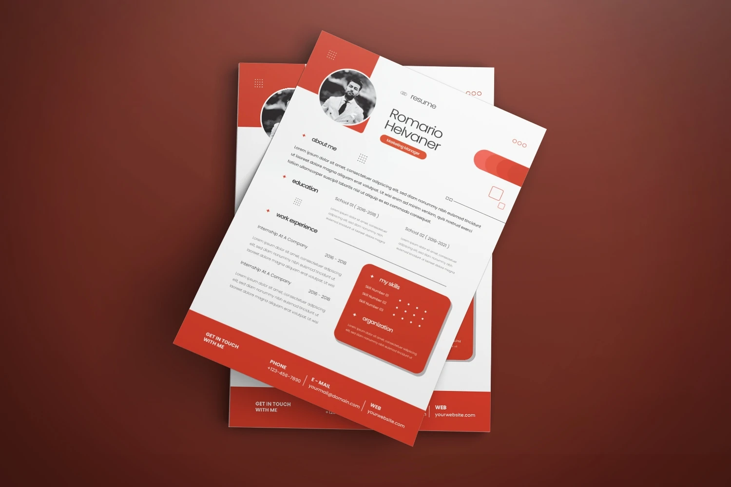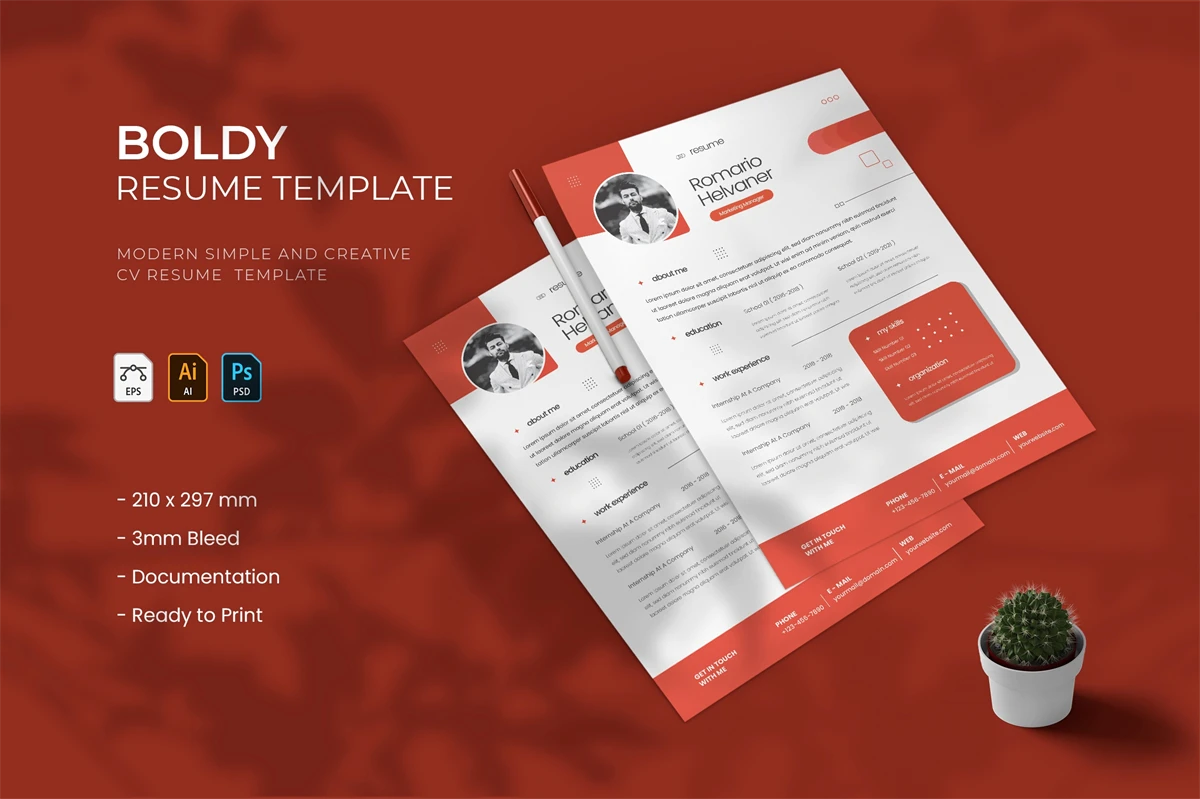 creative resume and cover letter template that will make your resume stand out from the hundreds of resumes employers get. It gives you the information you need, such as your name, contact information, social media links, education, experience, skills and interests. Also, it comes with three different color schemes.