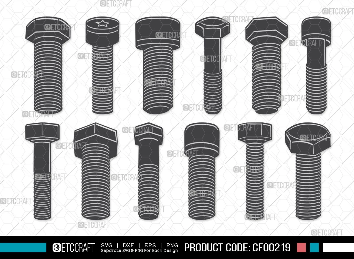 Elevate your creative projects with the Bolt Screw Silhouette Hex Cap Nut And Bolt Hardware Tool SVG Cut File Bundle. This versatile collection of bolt and screw silhouette clipart provides endless possibilities for DIY enthusiasts and professionals alike.