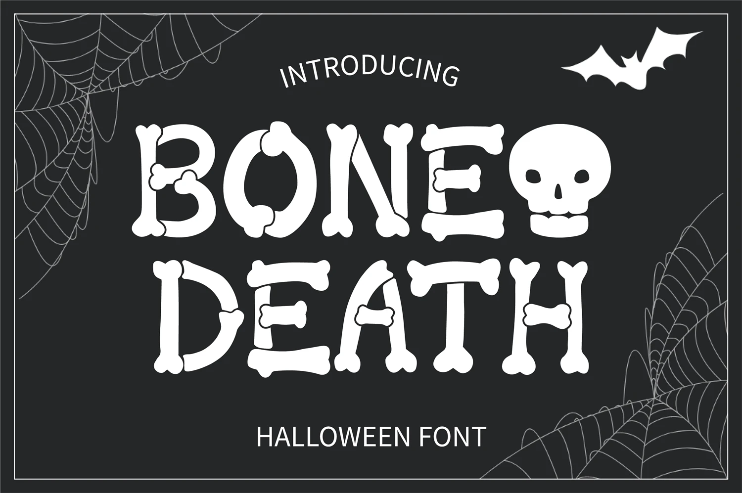 Bone Death is a fun and spooky display font. With its whimsical and mysterious vibe, this font would be the perfect choice for all your Halloween or horror-inspired projects.