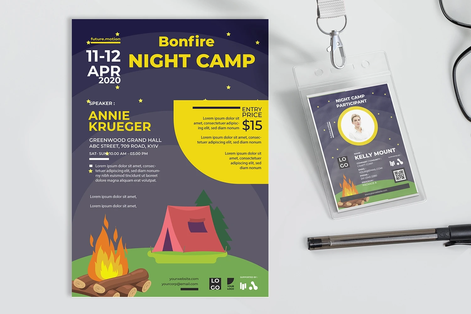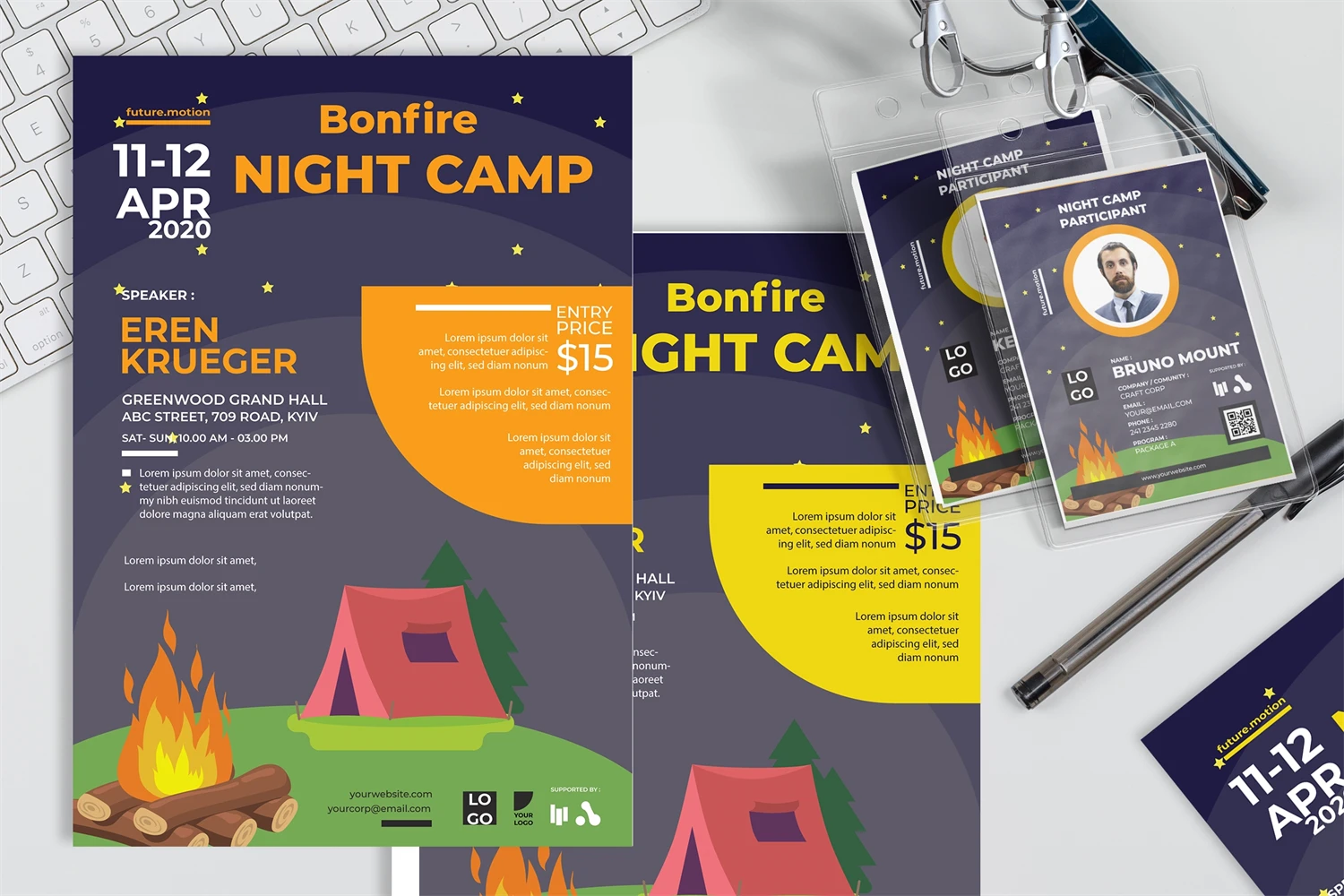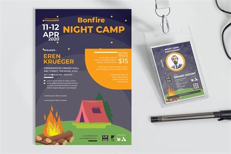 Bonfire Night Camp - Poster and Seminar Invitation, is an invitation card leaflet, poster design, etc. Simple and very elegant You can easily edit & adjust each design because each layer such as text, images and shapes are well organized and highlighted.