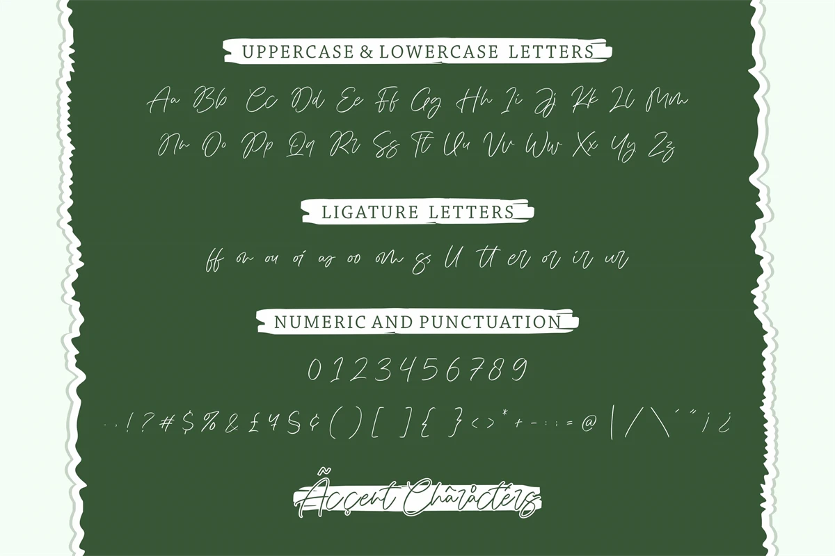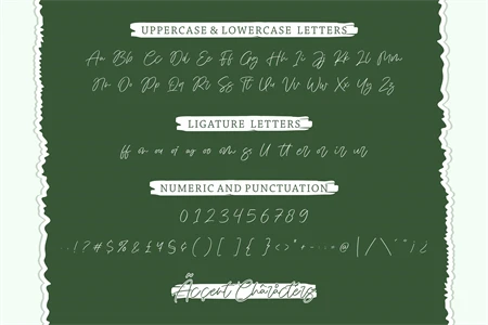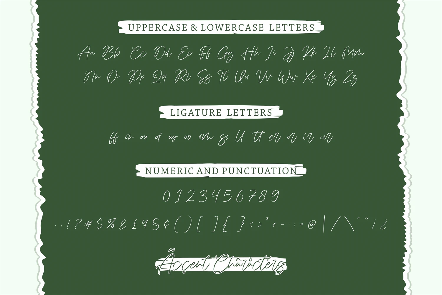 The stylistic alternate, ligatures, and the tick and thin strokes make this font looks like real handwriting. This font is perfect for logos, invitations, labels, magazines, books, greeting/wedding cards, packaging, fashion, make-up, stationery, novels, labels, or any type of advertising purpose.