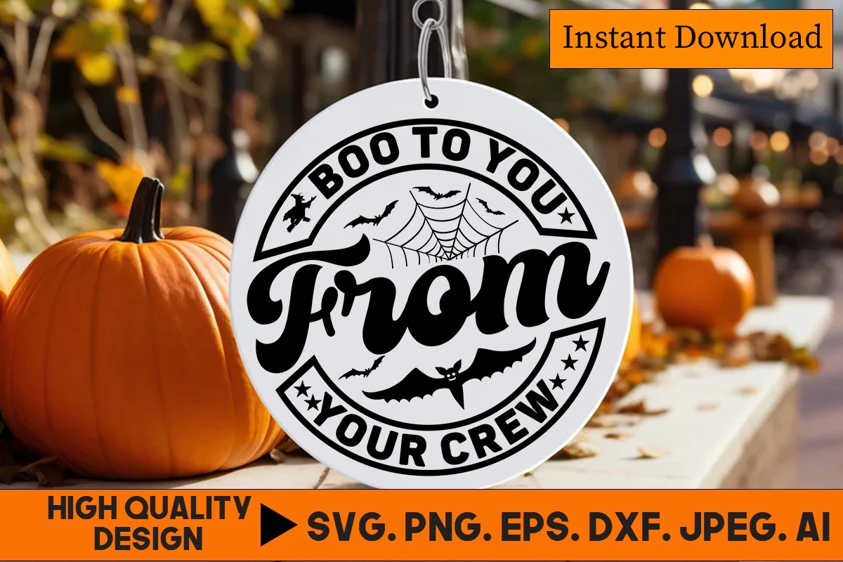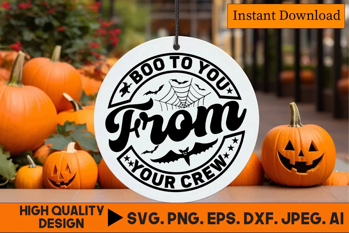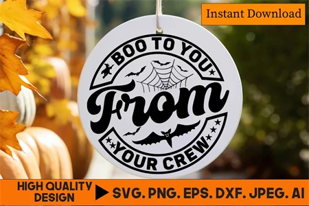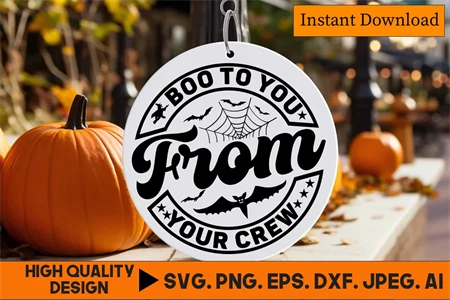 Boo To You From Your Crew Halloween Round Sign SVG Design