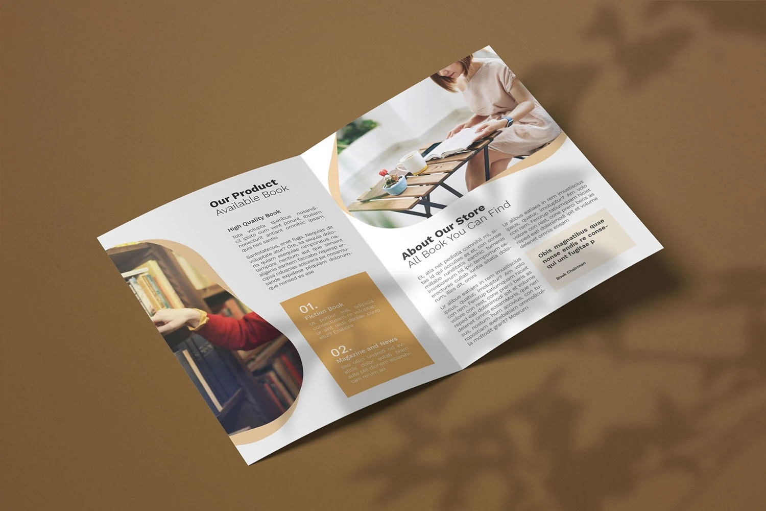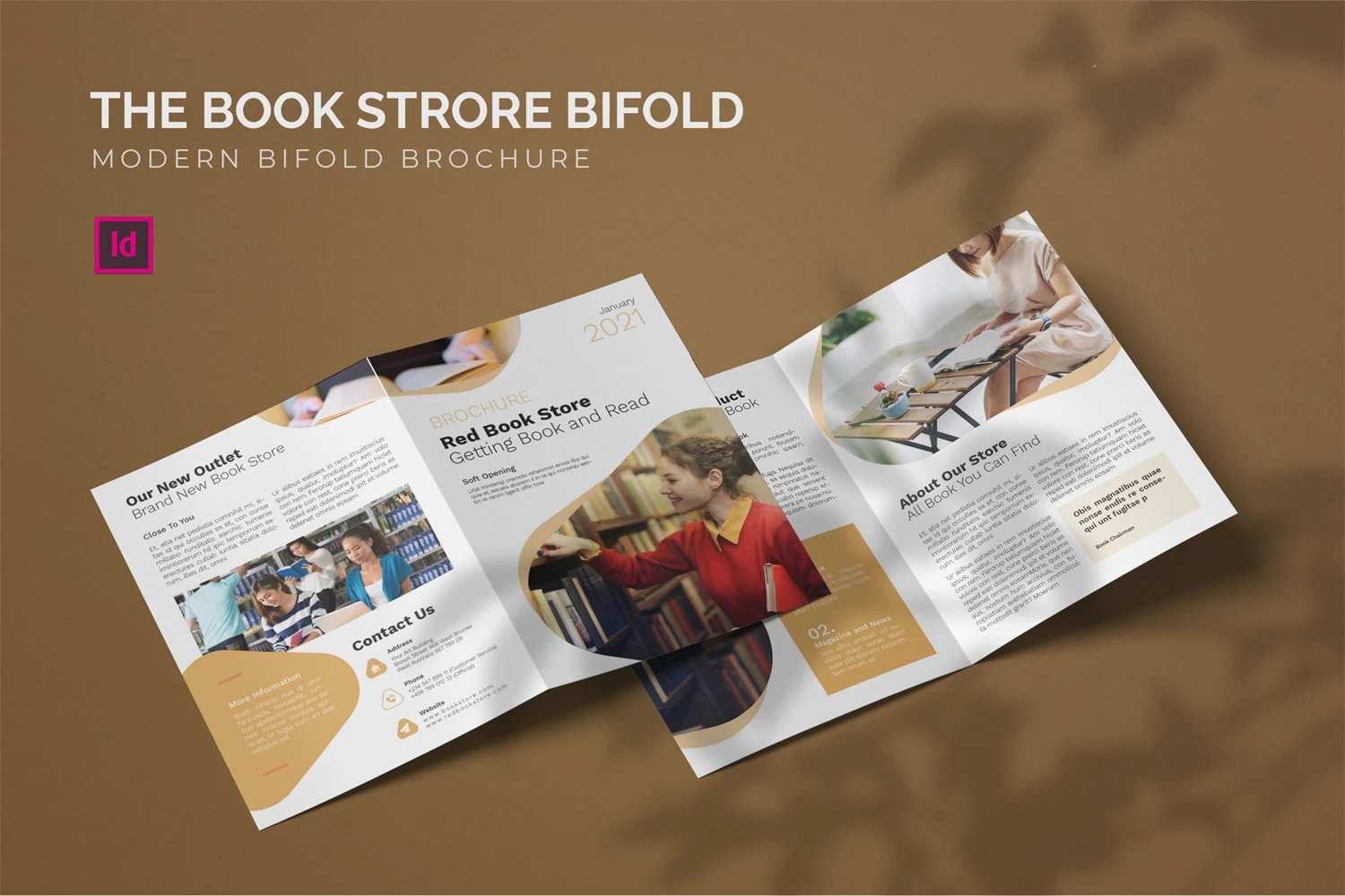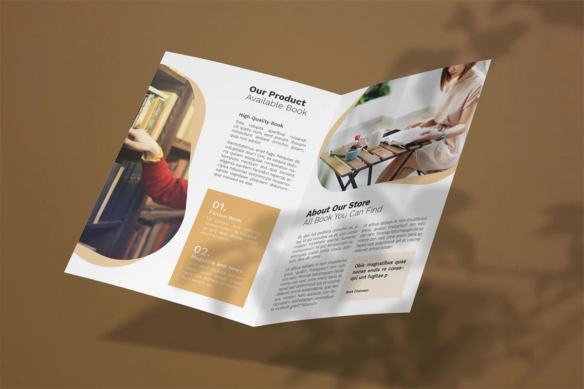 Book Store - Bifold Brochure We present this Bifold Brochure for you, simple and very elegant, and this Bifold Brochure is suitable for all types of your business, made with adobe inDesign, very easy to customize, Hope you Like it, dont forget to rate, Thanks.