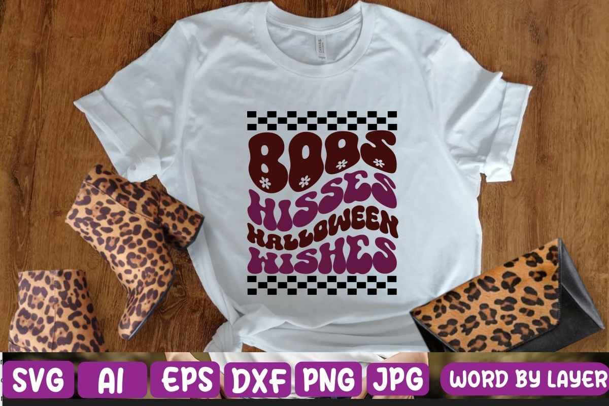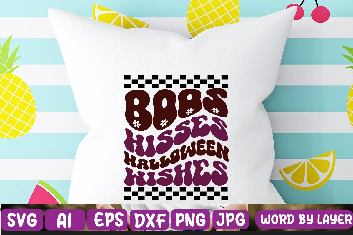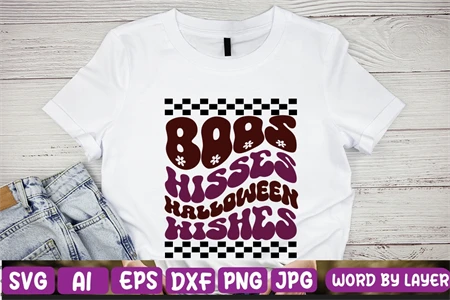 BOOS HISSES HALLOWEEN WISHES Retro SVG Design,cut file