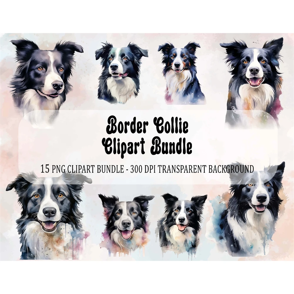 Border Collie Clipart 15 High Quality PNG,Watercolor